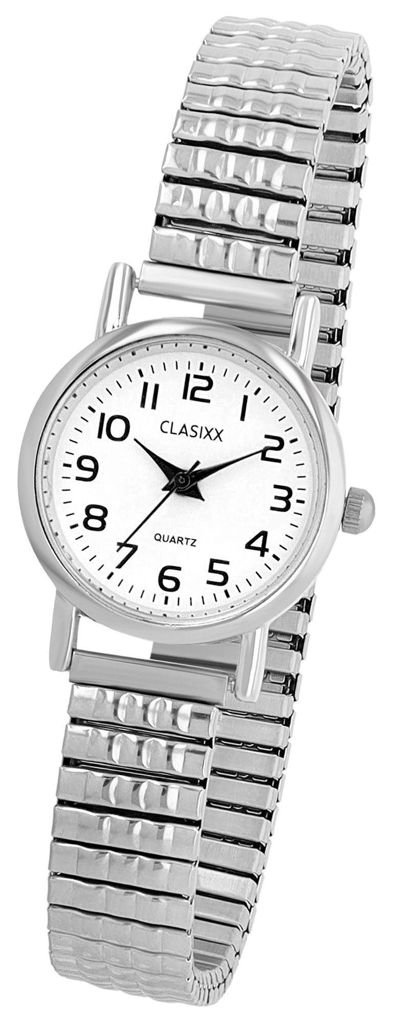 Productinformatie "CLASIXX dameshorloge met roestvrijstalen schakelarmband, zilverkleurig/wit"