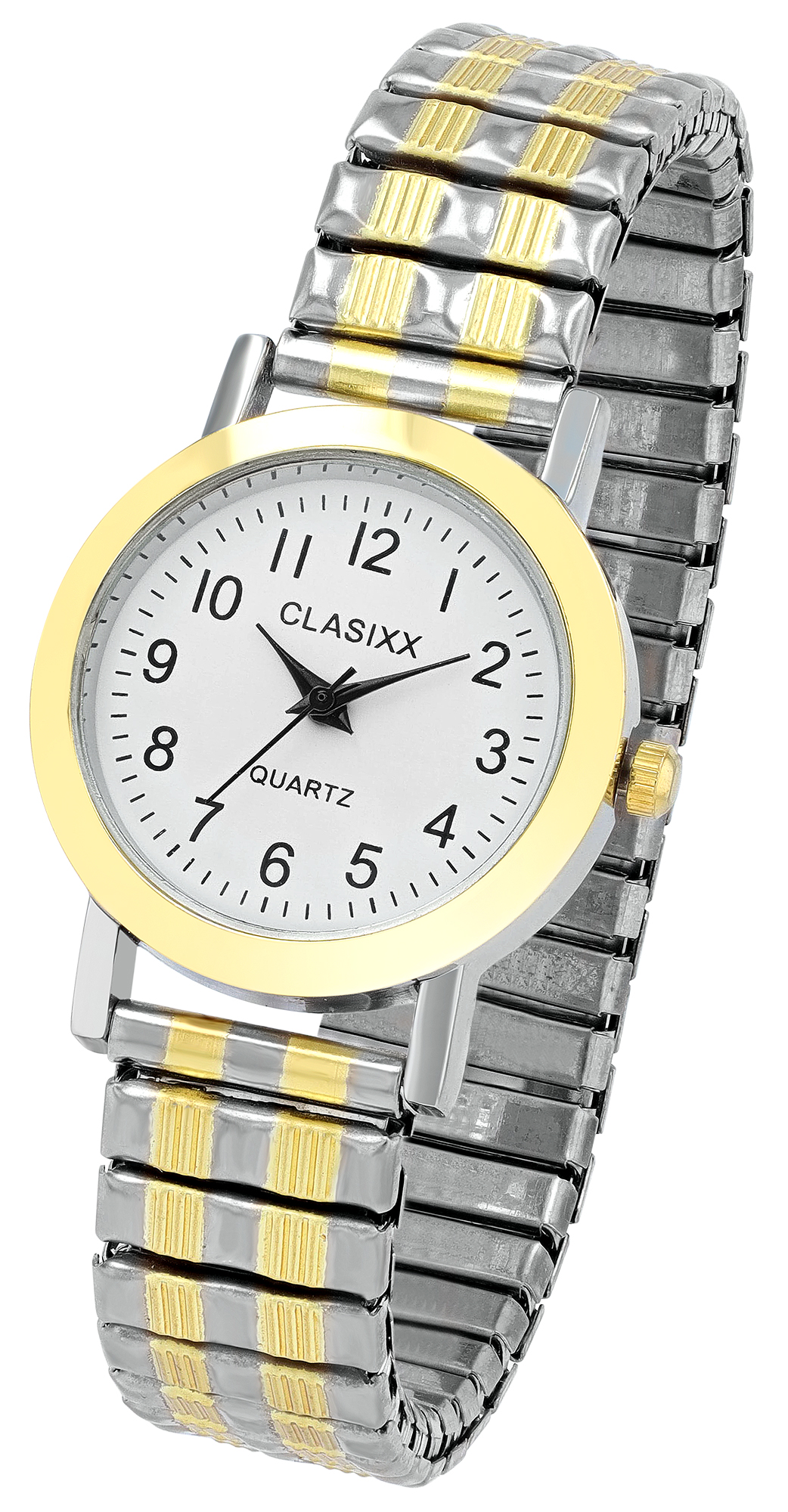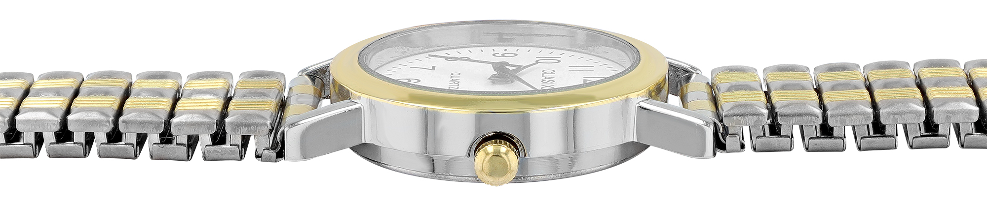 Productinformatie "CLASIXX dameshorloge met roestvrijstalen schakelband, Ø 28 mm, tweekleurig/wit"