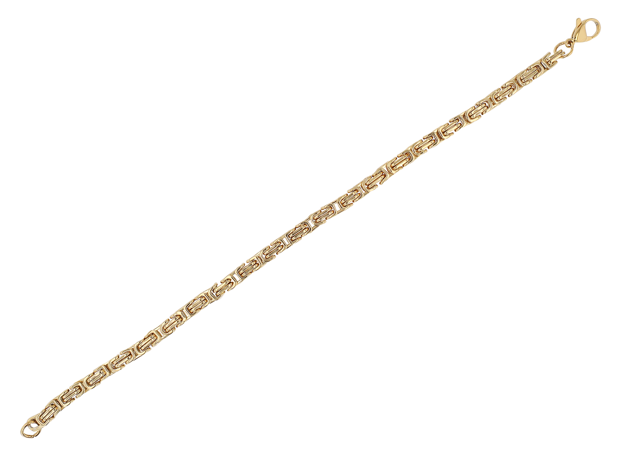 Deze 4 mm dikke armband is verkrijgbaar in lengtes van 20, 22 cm of 24 cm, passend bij elke sieradenliefhebber. De koningskettingarmband is met uiterste precisie vervaardigd voor een onberispelijke afwerking en een onweerstaanbaar design. De schakels zijn vakkundig met elkaar verweven om de iconische koningsketting-textuur te creëren.