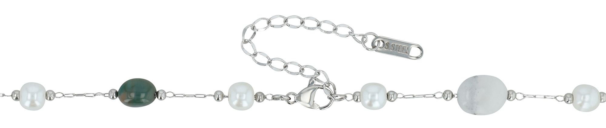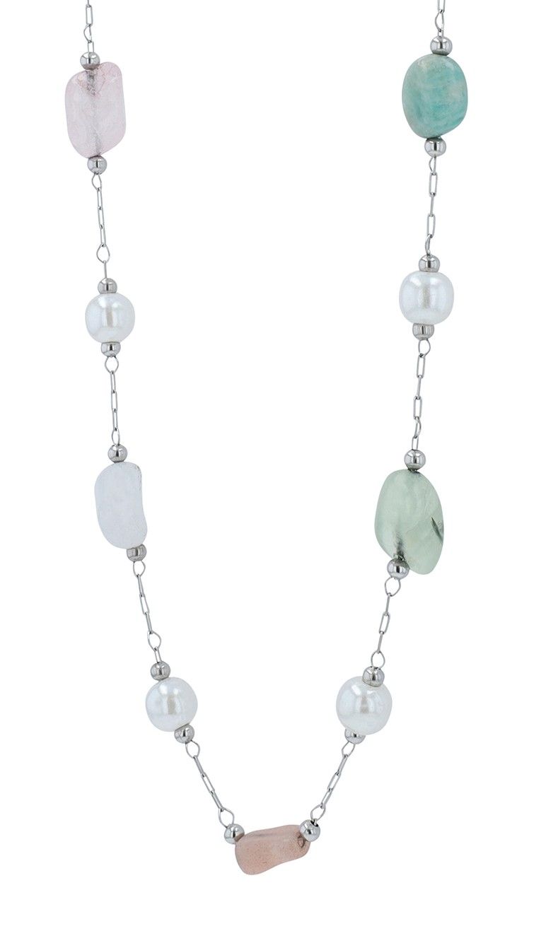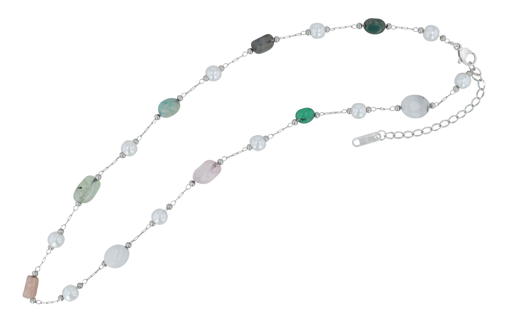 Productinformatie ""Candan"Edelstahlkette mit Süßwasserperlen und bunten Natursteinen"