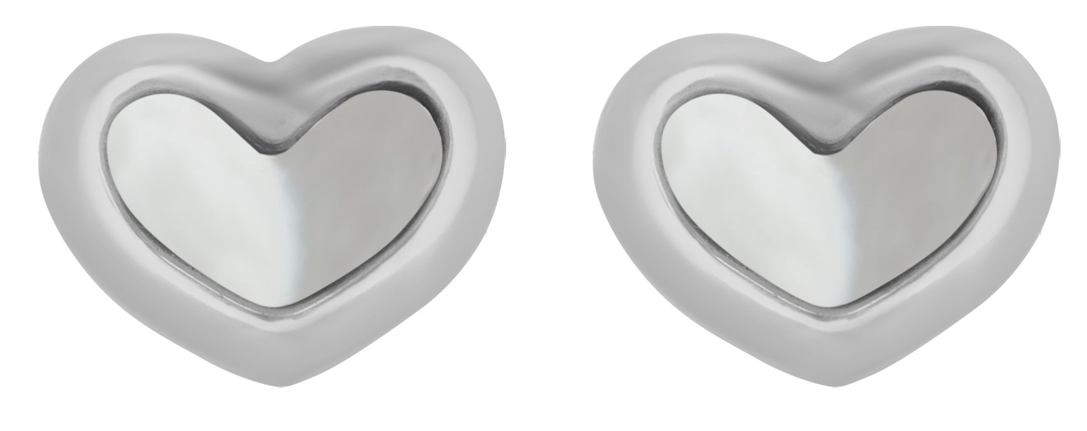 Productinformatie ""Candela" - Hart, roestvrijstalen oorbellen met echte parelmoer elementen, zilverkleurig"