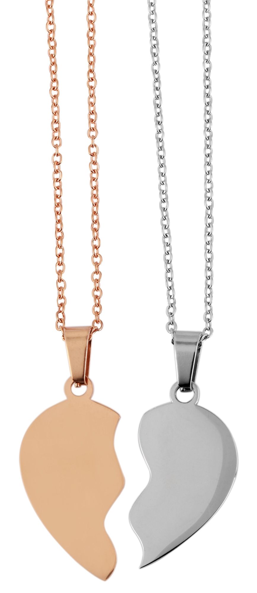 Productinformatie ""Caral", Akzent partner/vriendschapsketting, roestvrij staal, hart, graveerbaar, gepolijst, zilver/roségoudkleurig, 43+5 cm"