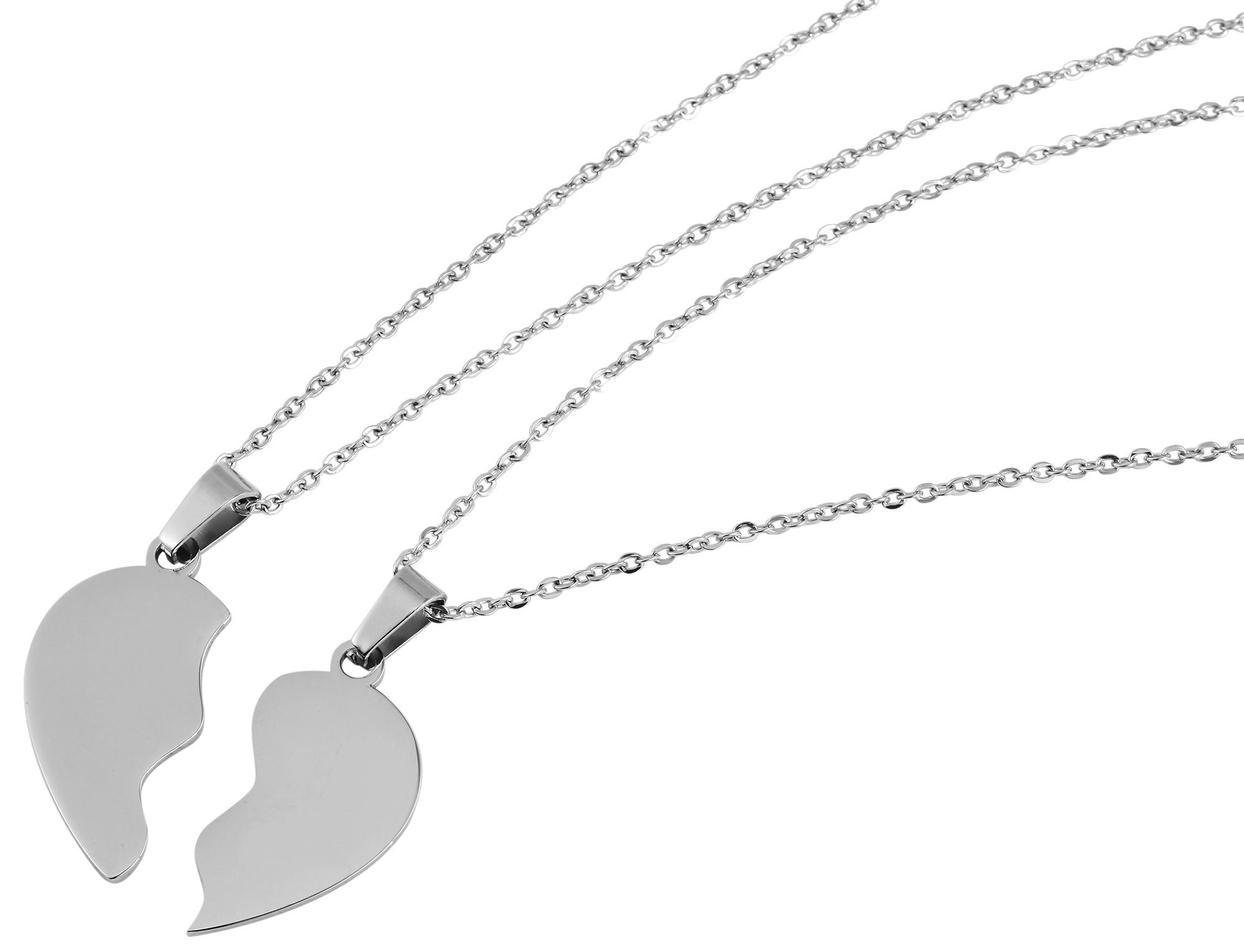 De afmetingen komen voort uit een lengte van 43 cm en een dikte van 0,5 mm. De hartvormige hangers hebben een lengte van 28 mm, een breedte van 15 mm en een dikte van 1,5 mm. Deze personaliseerbare partnerkettingen zijn perfect voor hem en haar en ideaal om je geliefde te verwennen.