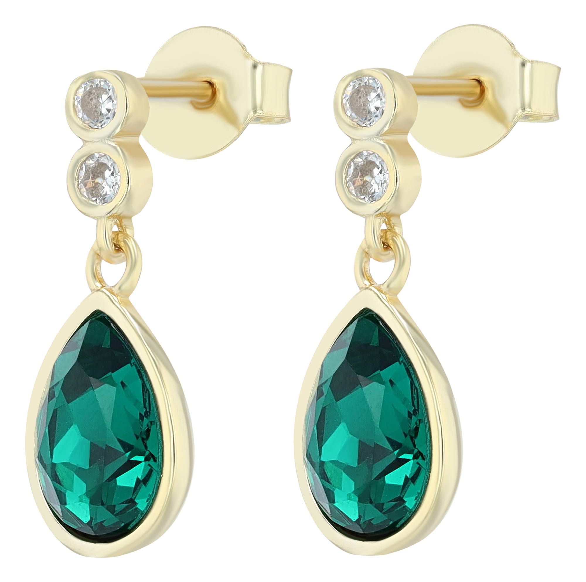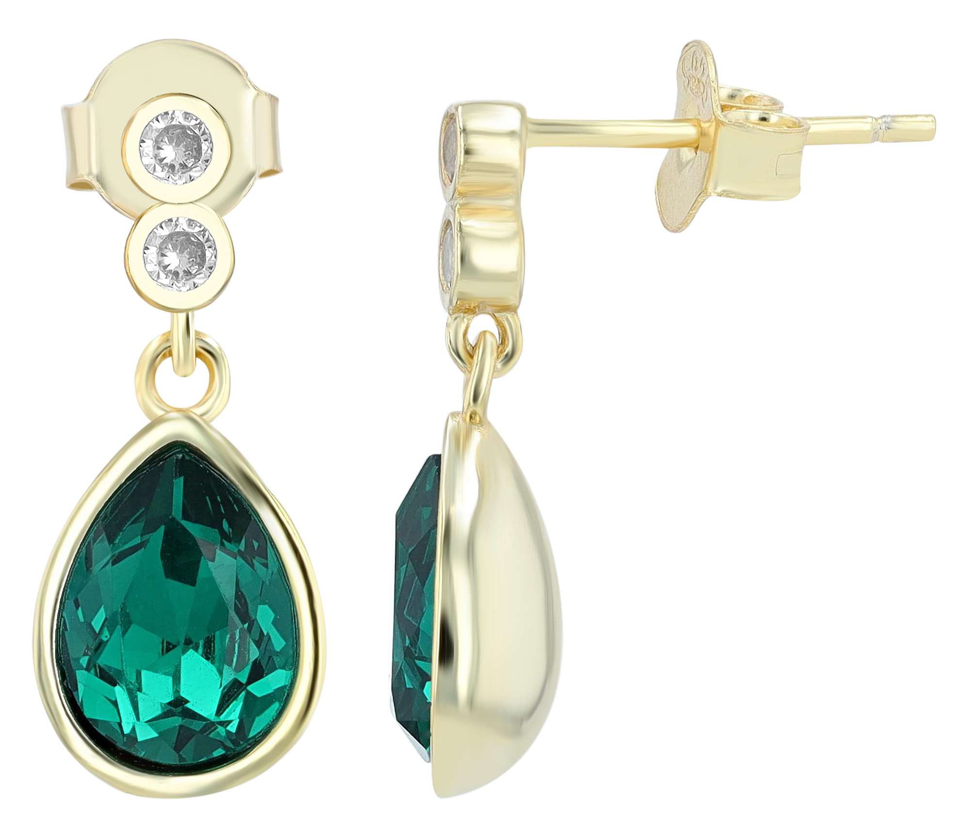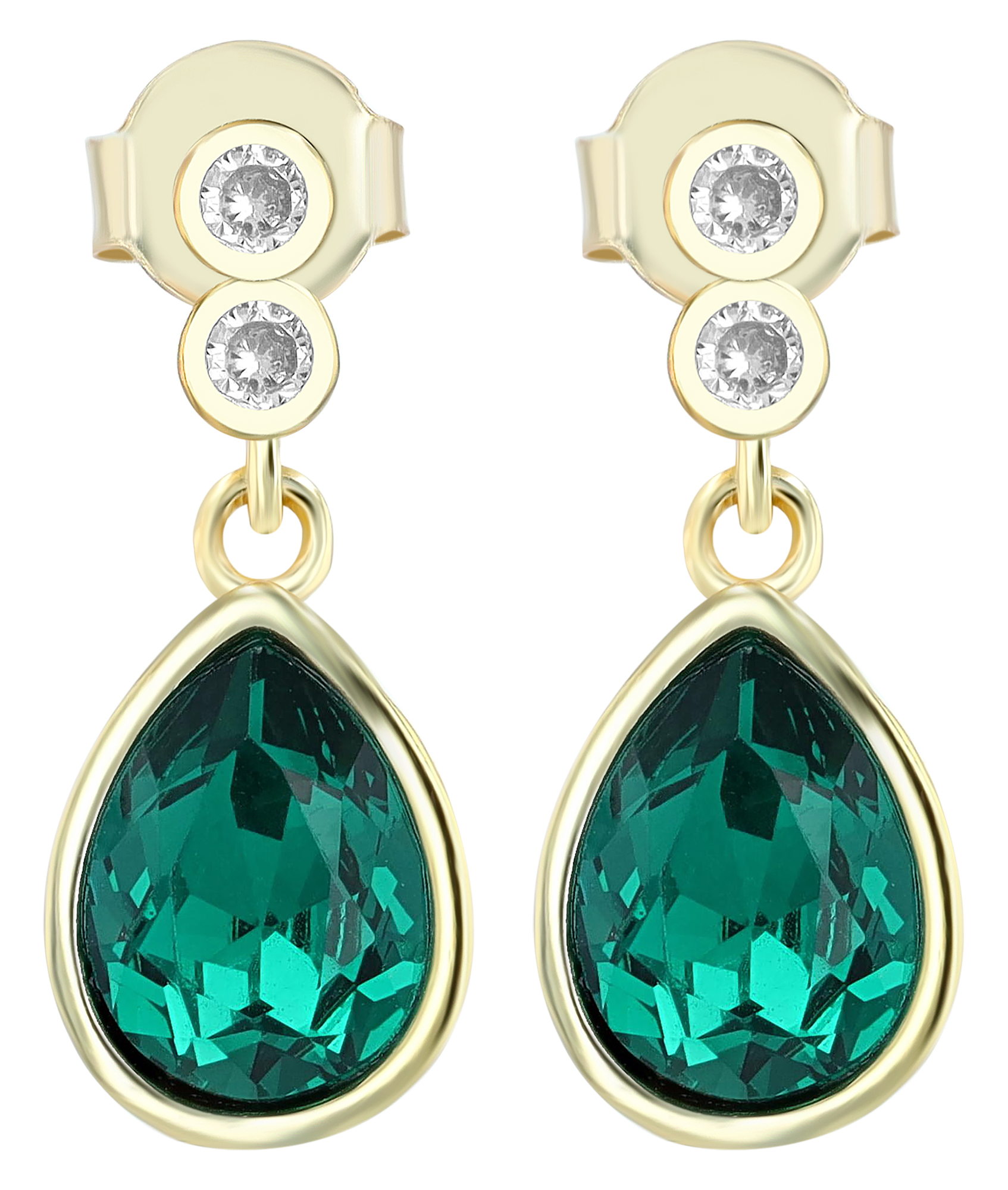 Productinformatie ""Carli" 925/- Echt Silber Ohrhänger, grüner Zirkonia, vergoldet"