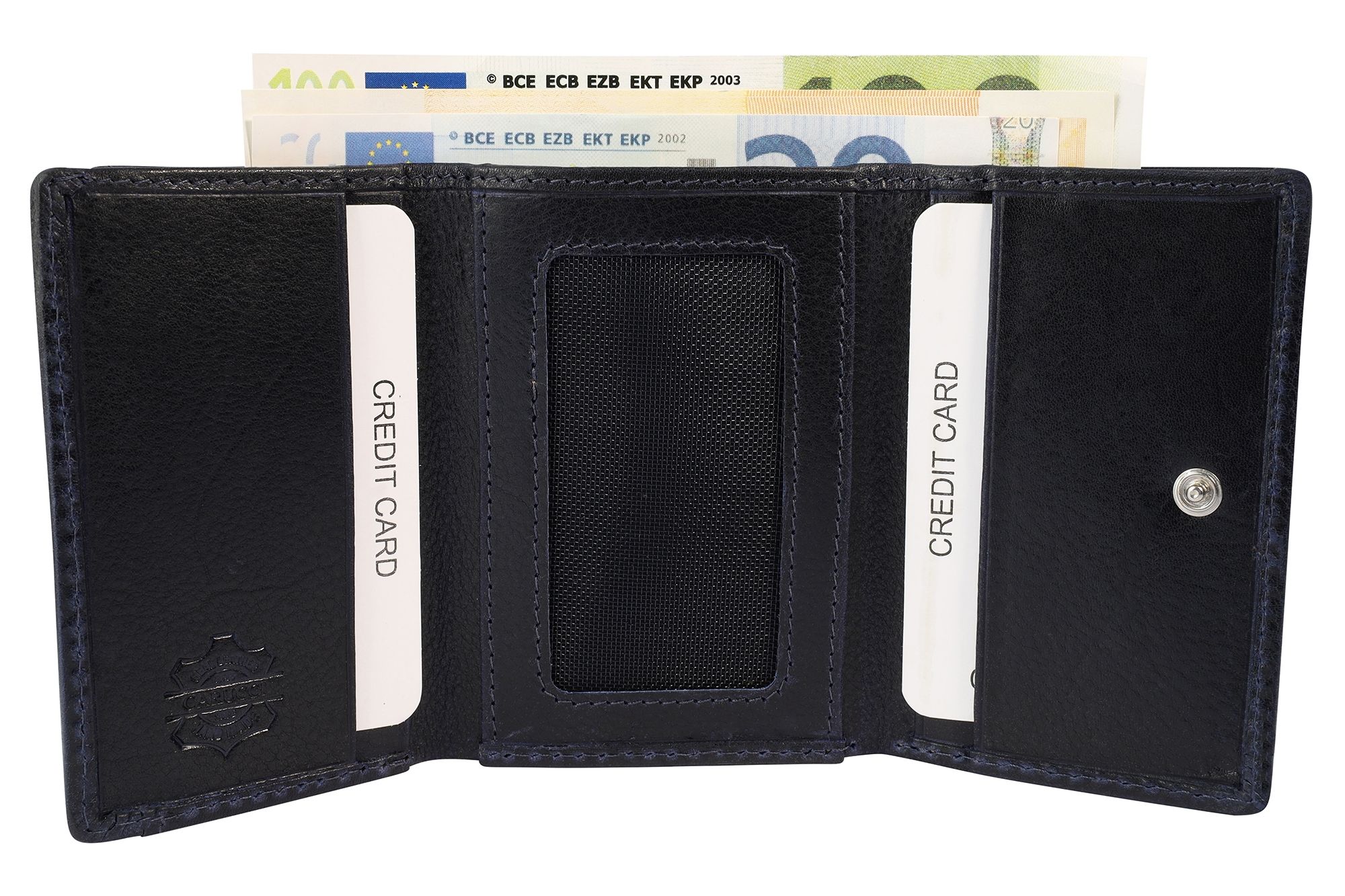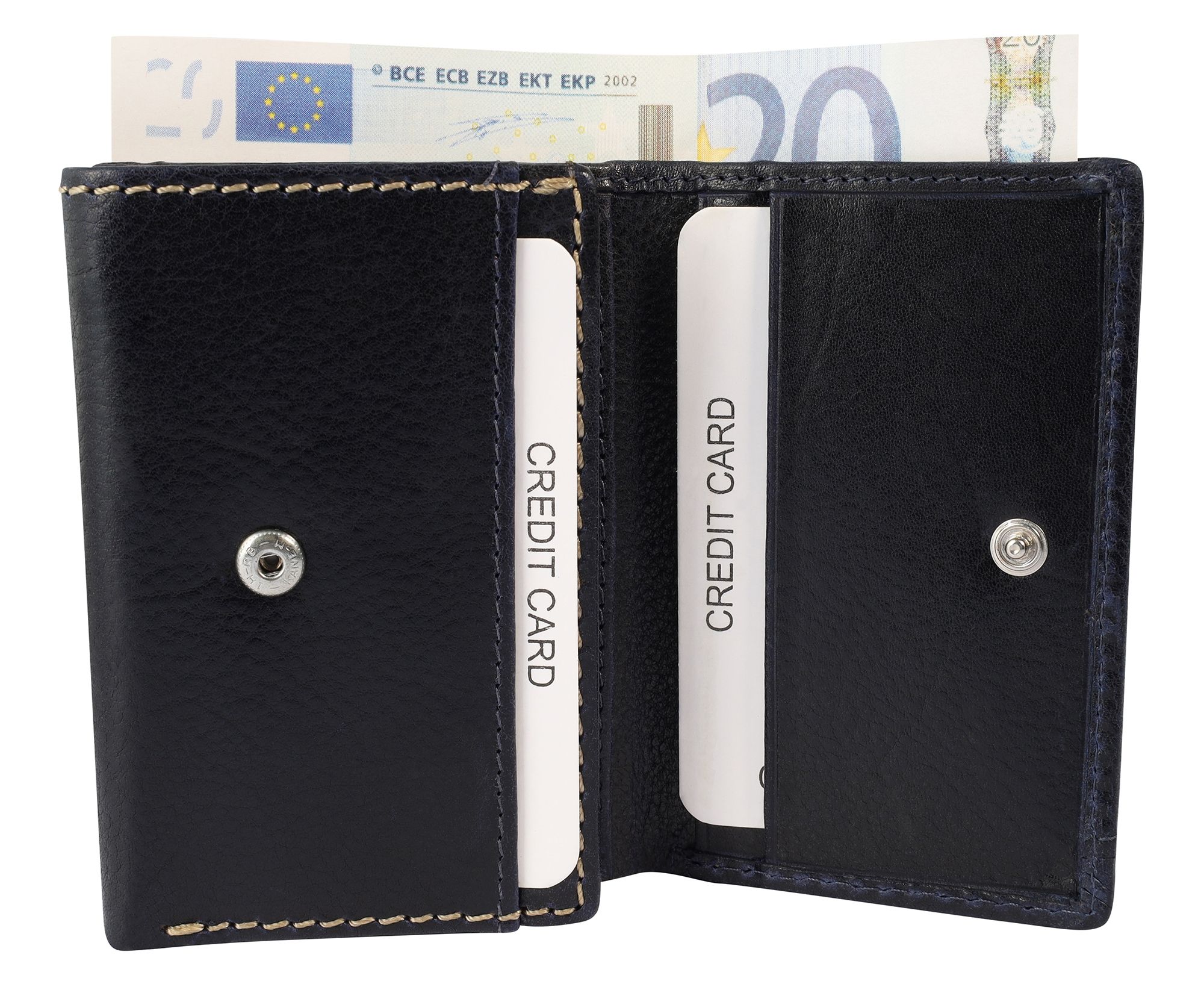 Productinformatie "Carucci echt lederen mini portemonnees, liggend formaat, blauw"