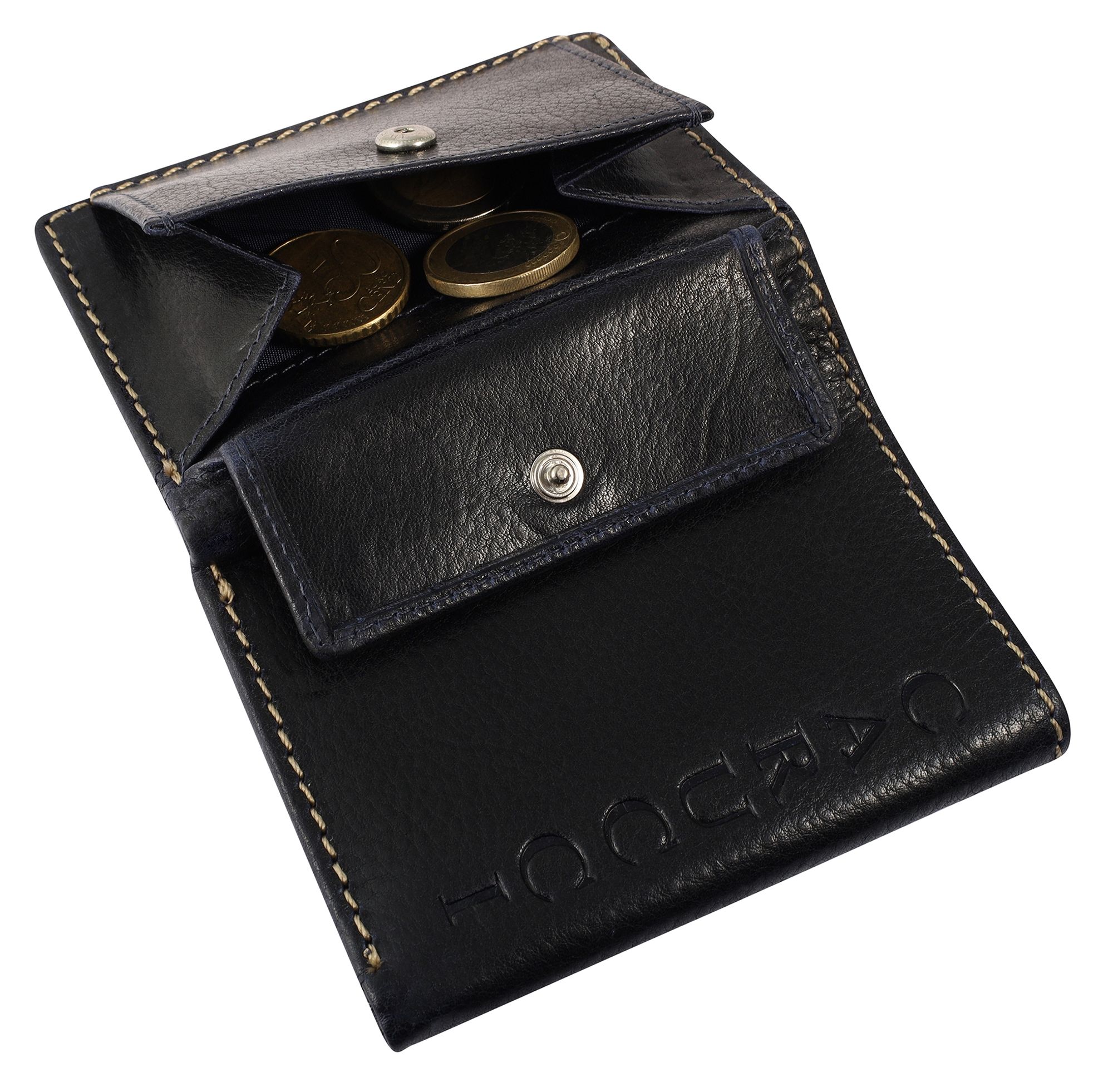 Deze kleine portemonnee van Carucci is gemaakt van hoogwaardig echt leer in een moderne pull-up look.