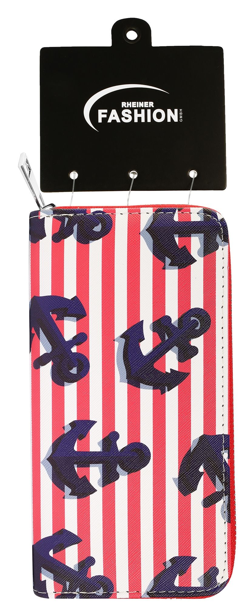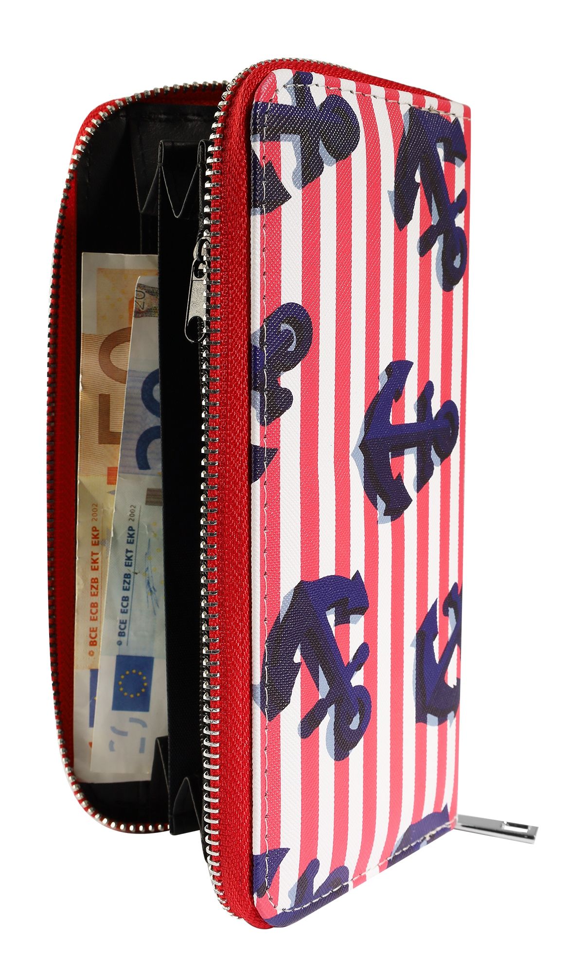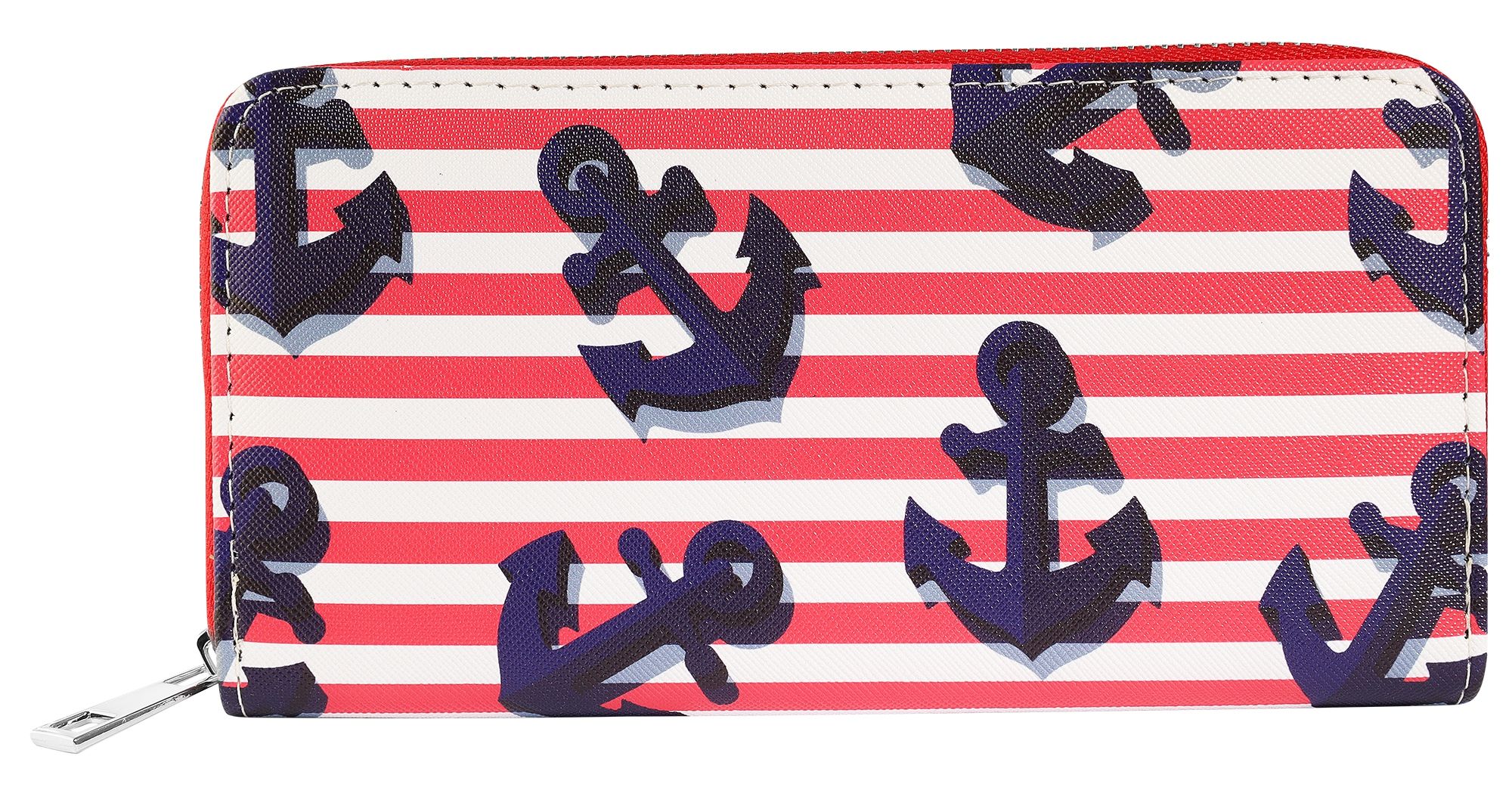 Productinformatie "Cham Cham damesportemonnee van imitatieleer, martime design, rood/wit met blauwe ankers"