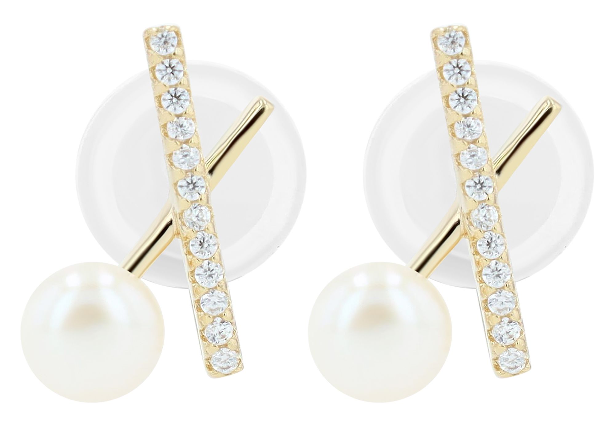 Productinformatie ""Chaska" 925/- echt zilveren oorbellen met zirkonia en zoetwaterparel, zilverkleurig gerhodineerd"