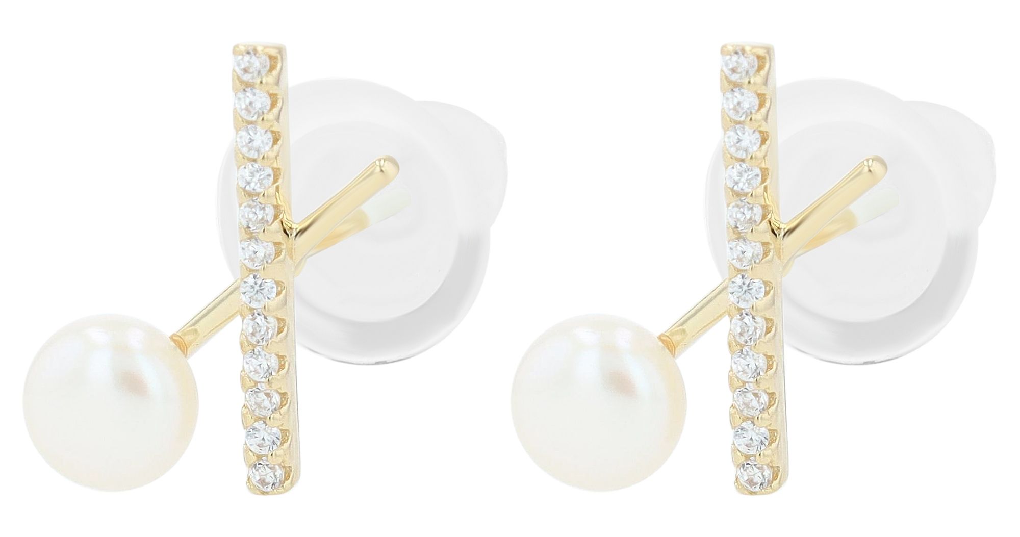 Het eerste element is versierd met 12 fonkelende zirkonia steentjes, terwijl het tweede element eenvoudig is gehouden en eindigt met een kostbare zoetwaterparel aan één uiteinde. De oorsteker combineert zo glamour en delicate elegantie in één sieraad.