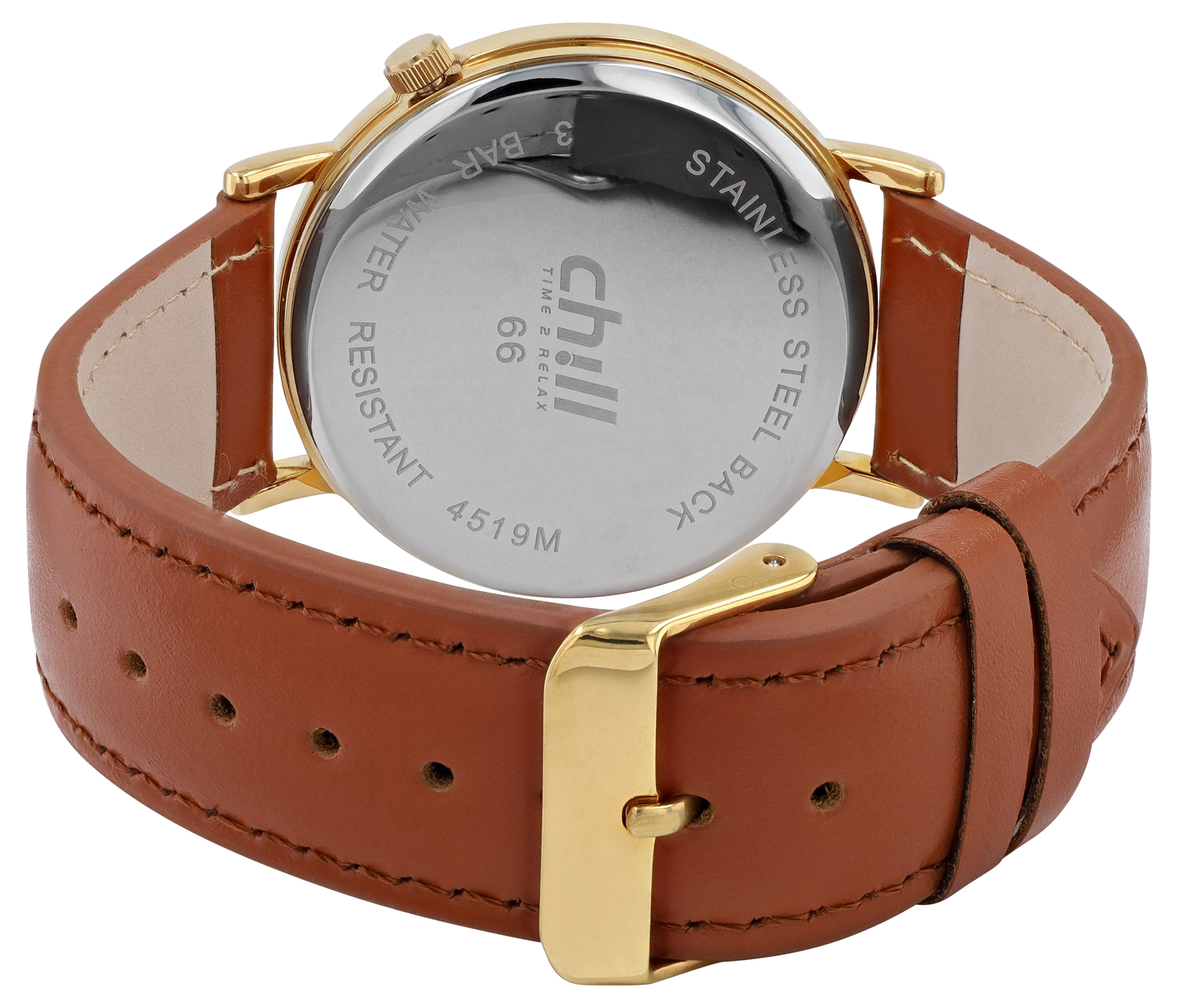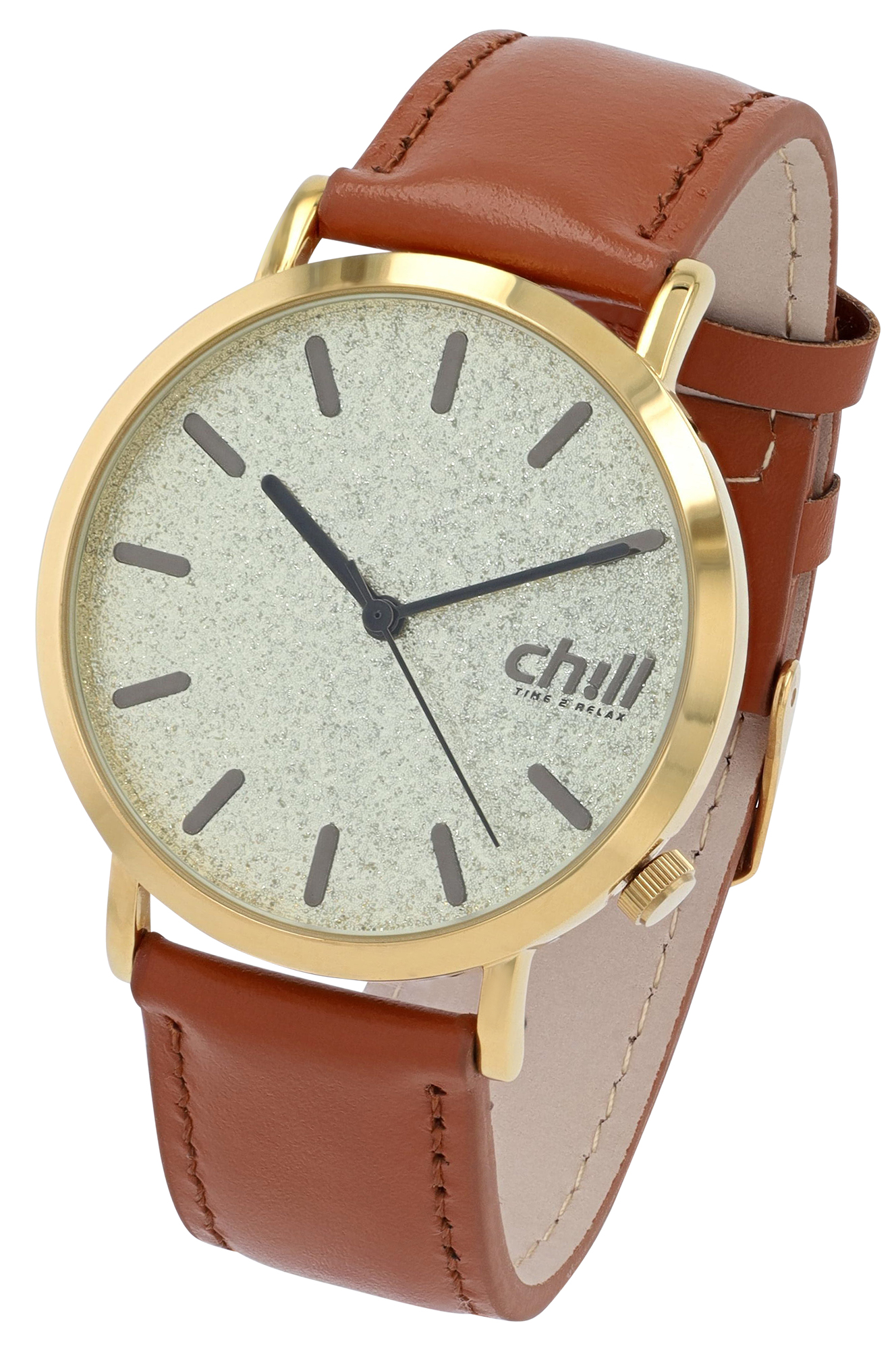 Chill, Damenuhr mit Lederimitat, Ø 40 mm, braun/ goldfarben/ Glitter-Optik