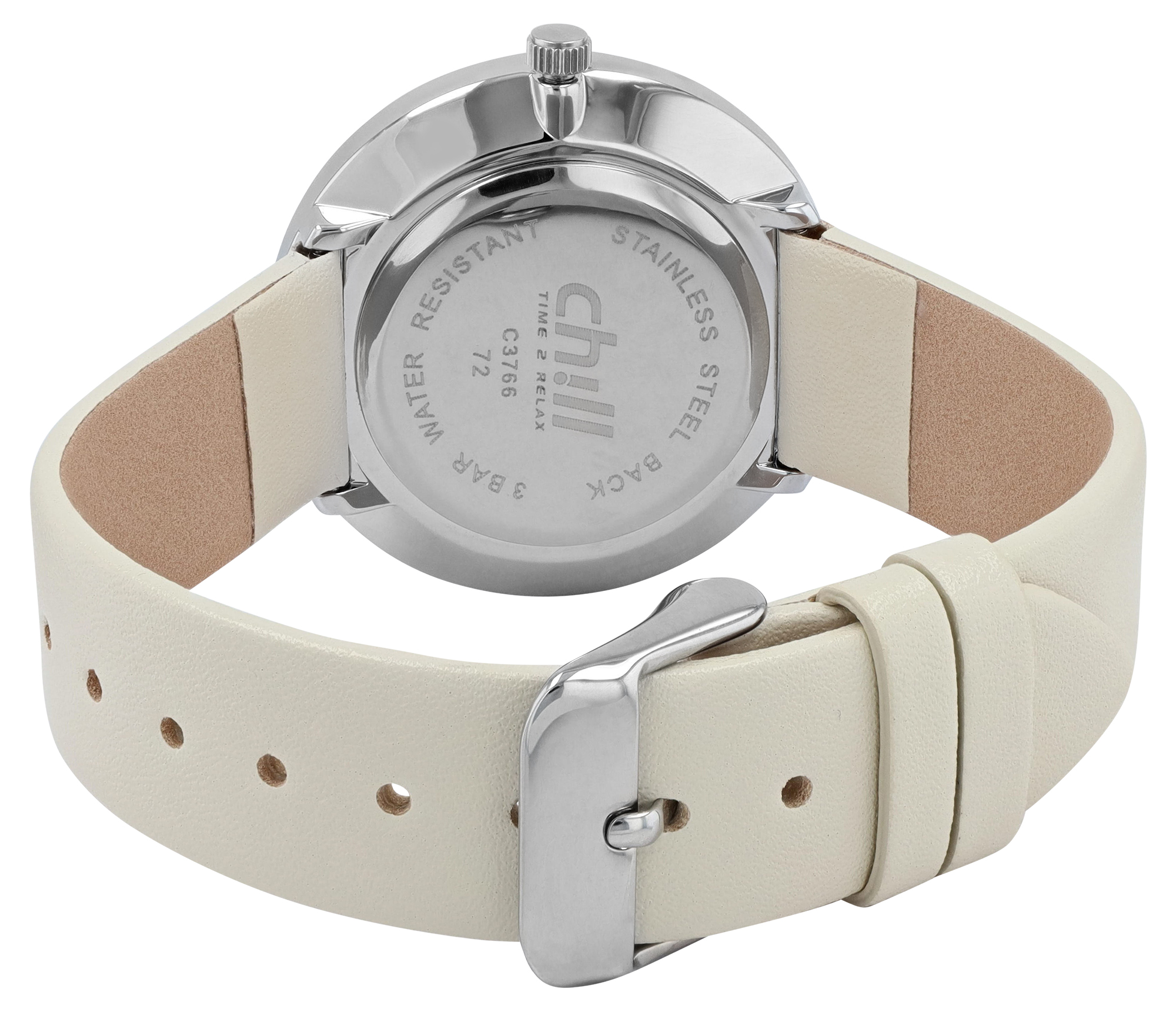 Chill, dameshorloge met imitatieleer, Ø 36 mm, ivoorwit/zilverkleurig