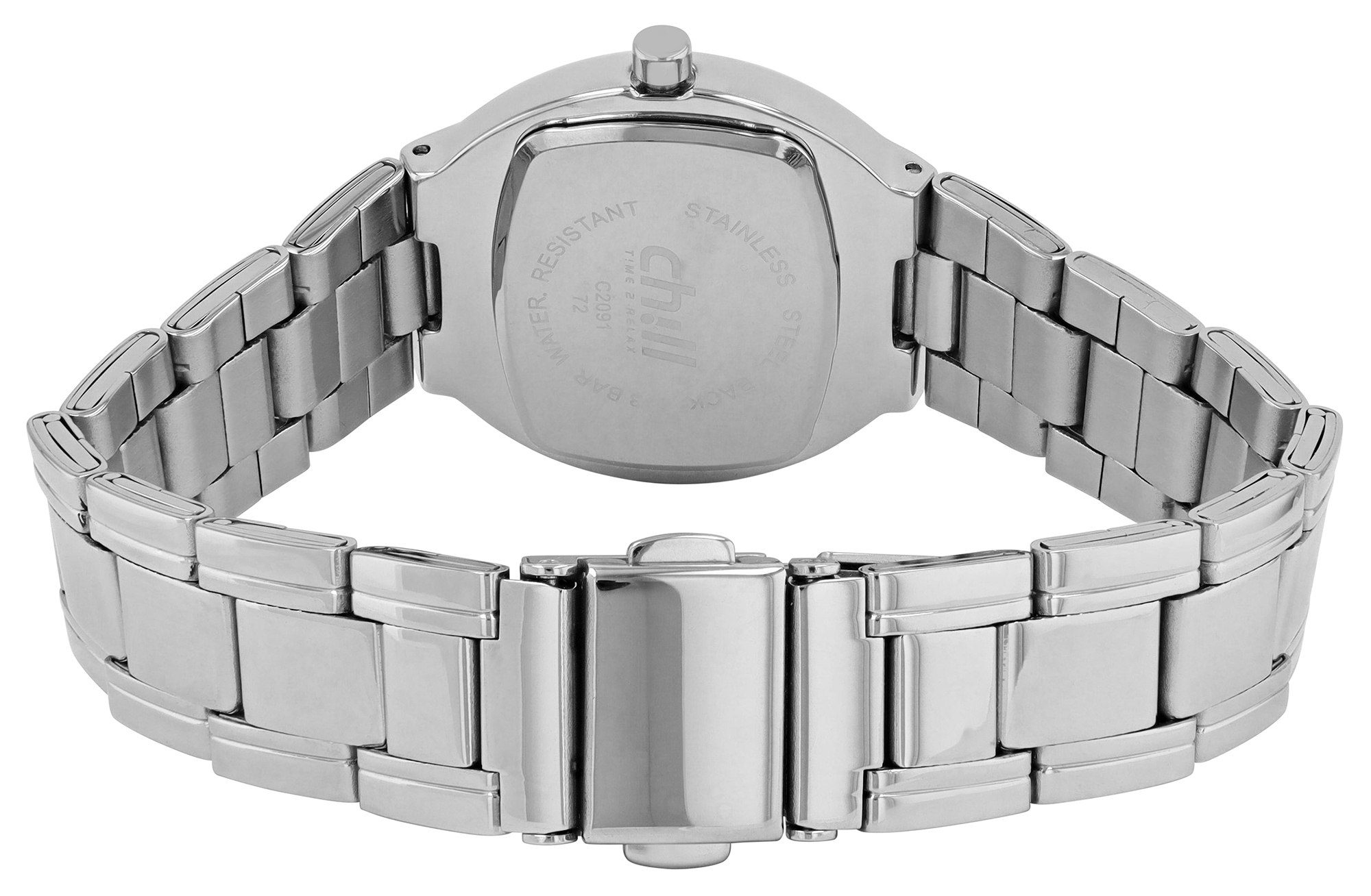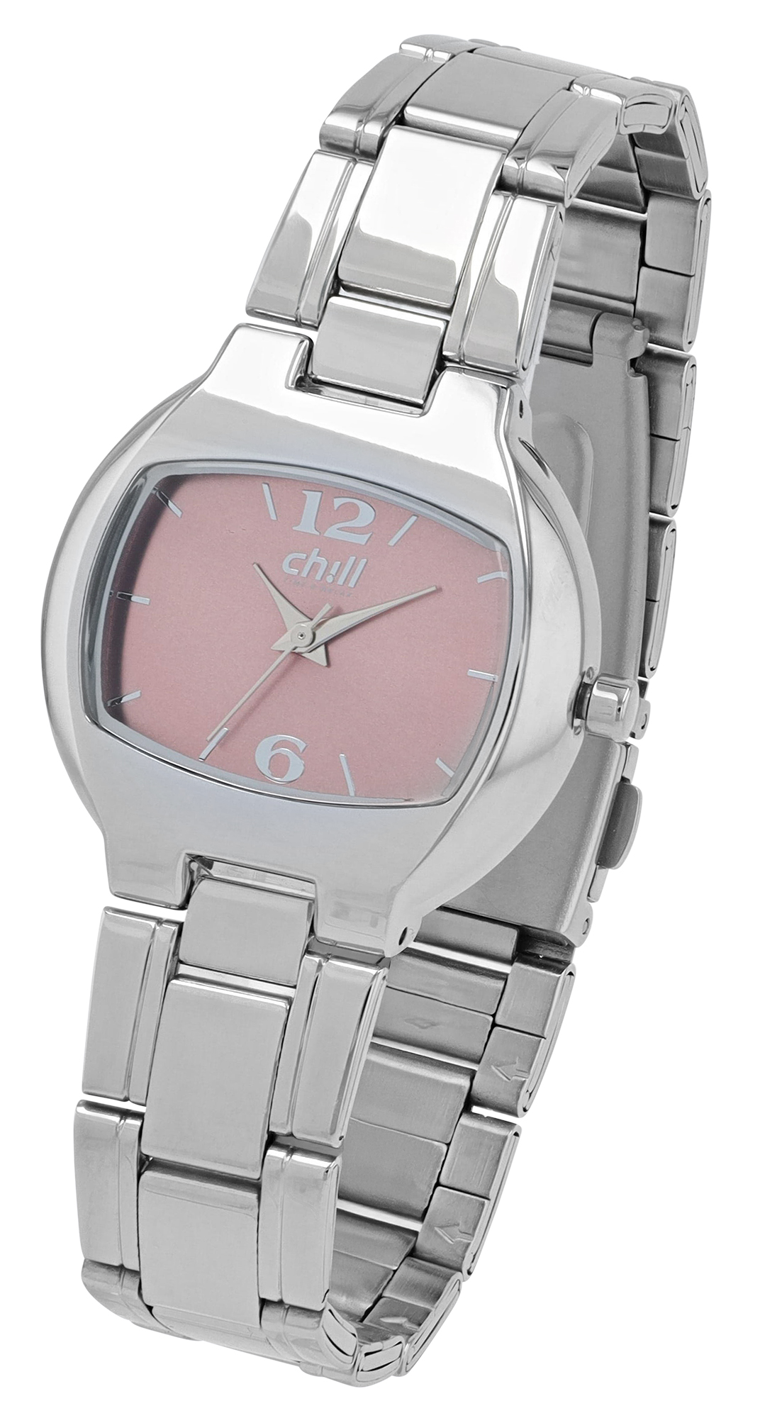 Chill, dameshorloge met roestvrijstalen armband, rechthoekig, zilverkleurig/roze