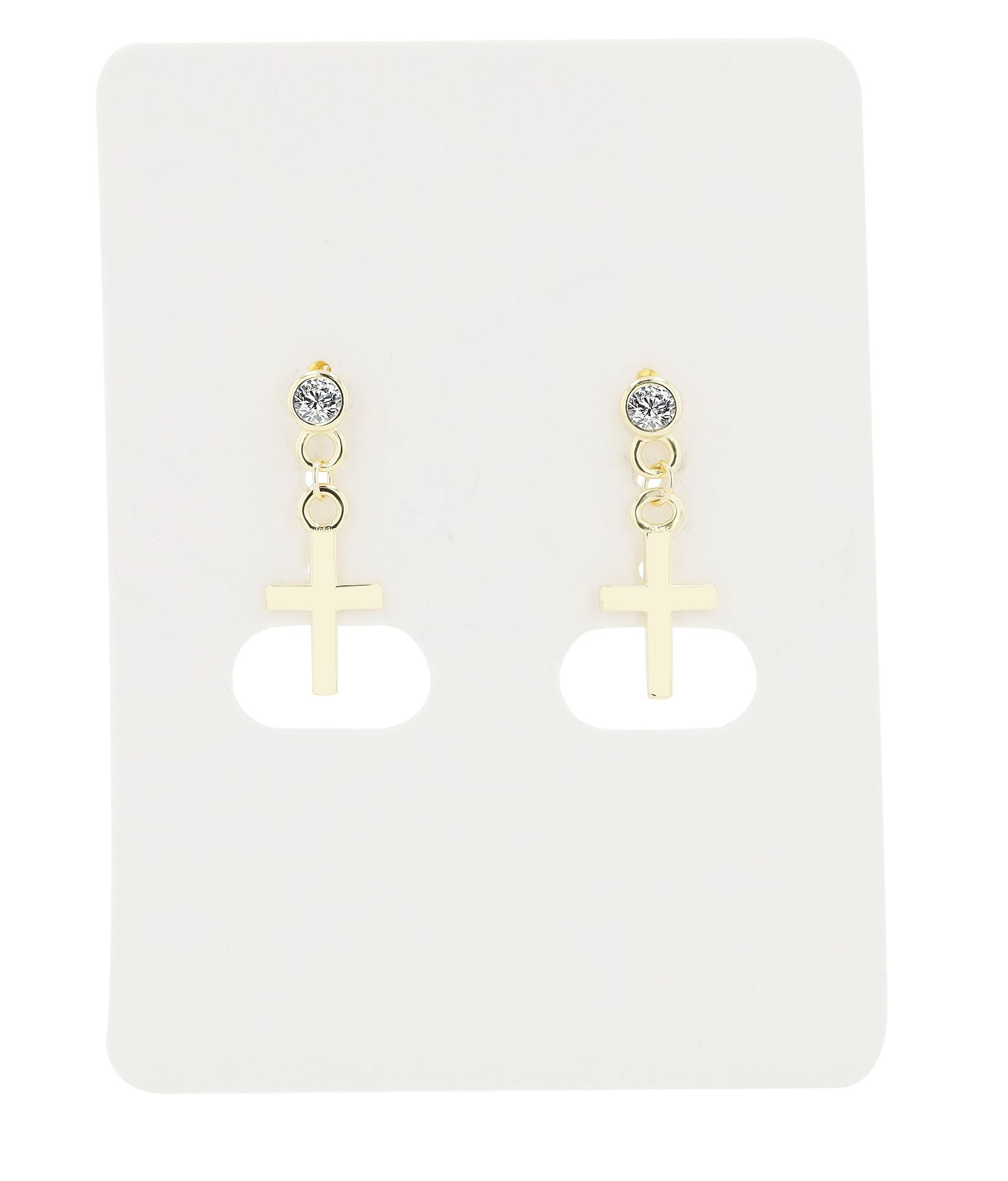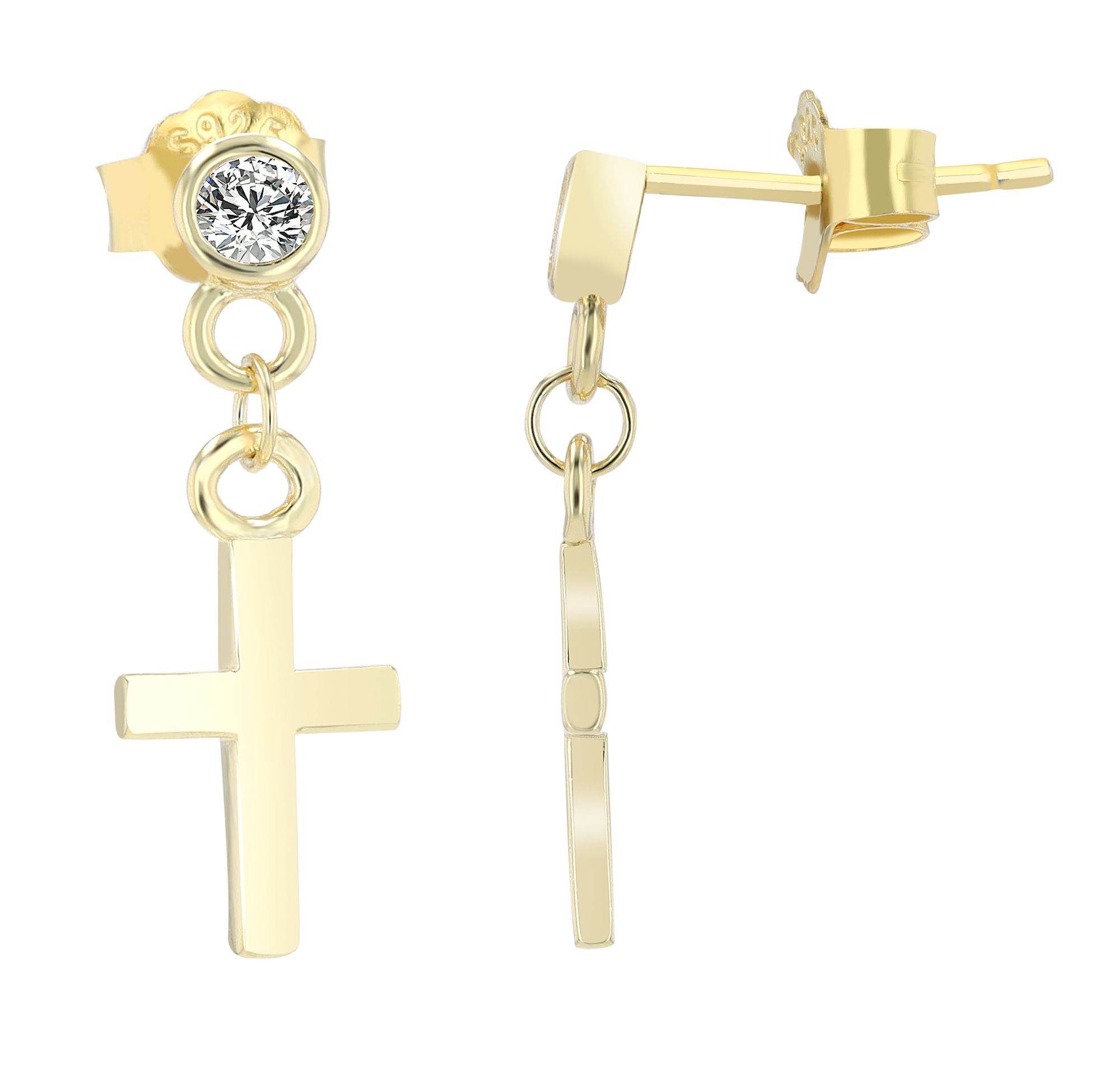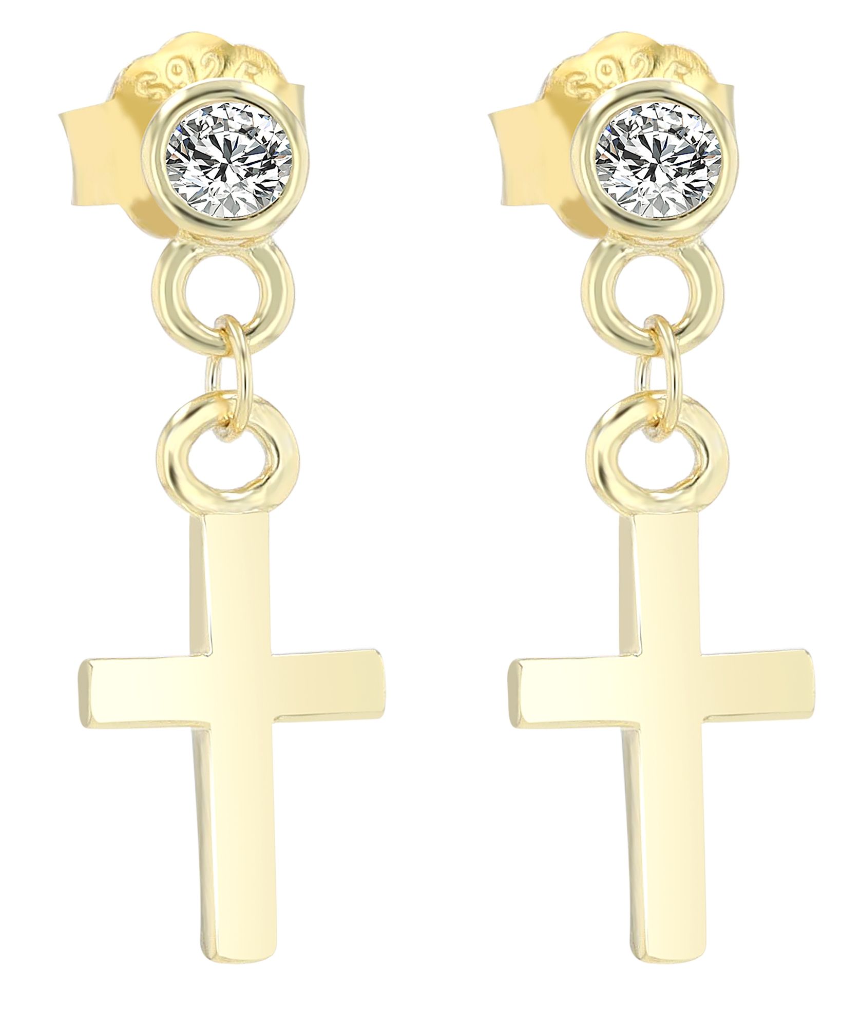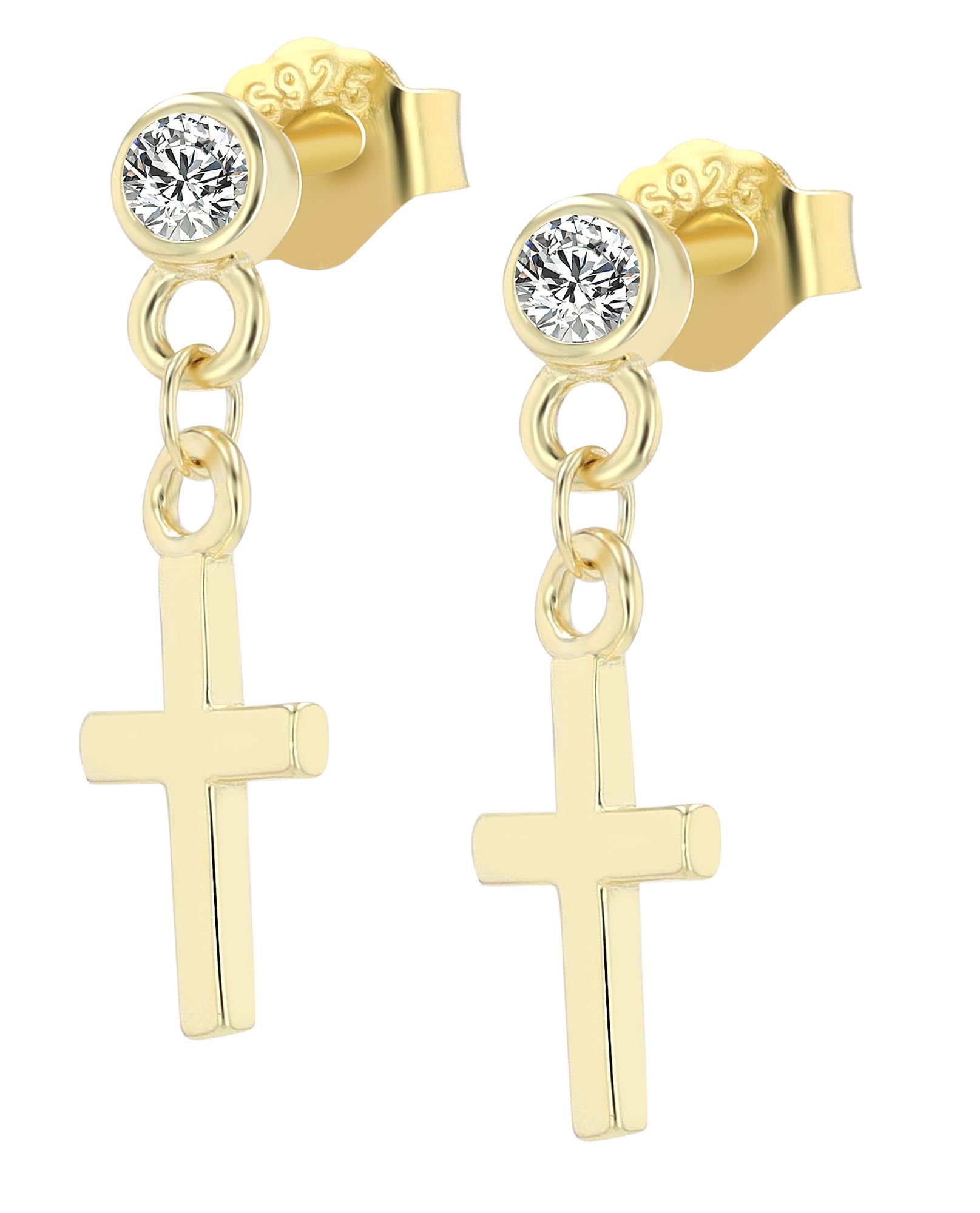 Productinformatie ""Christmar", 925/- echt zilveren oorbellen met kruis hanger, zirkonia, verguld"