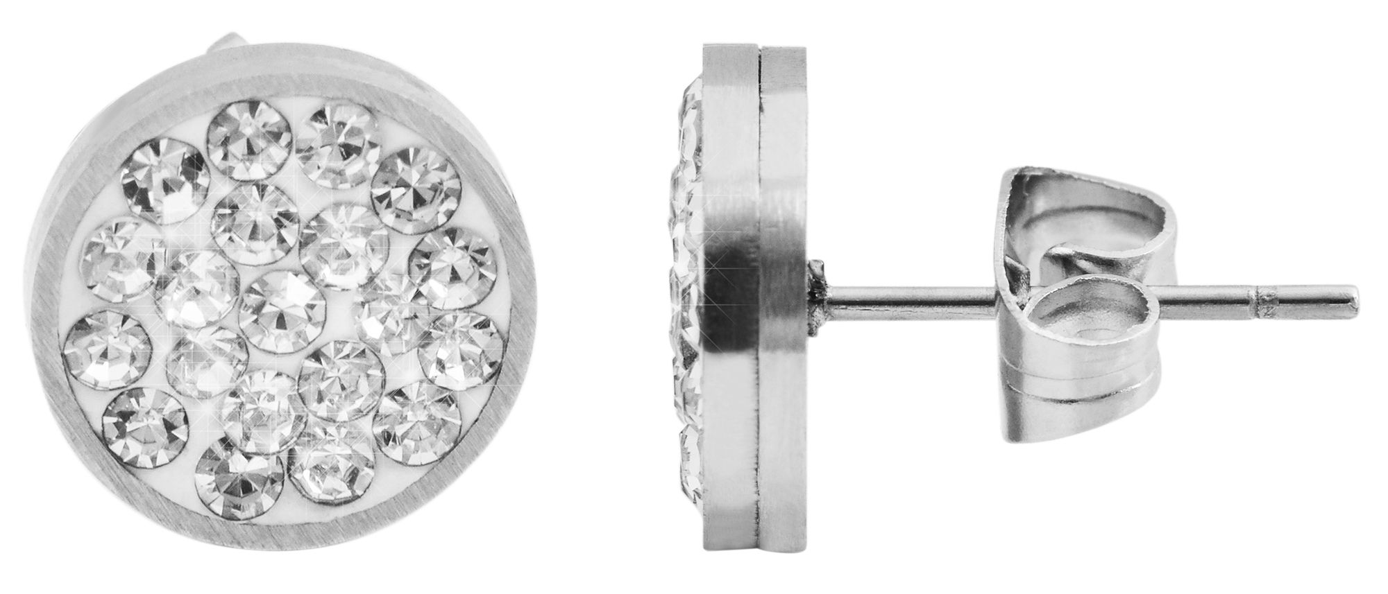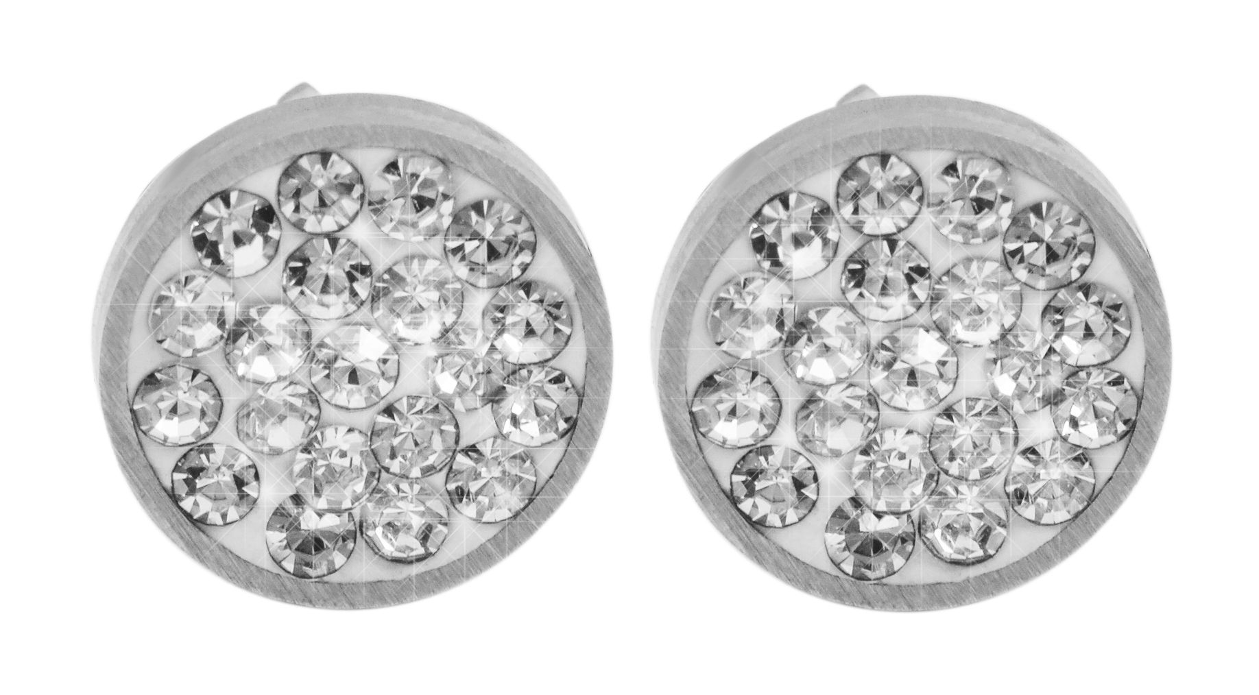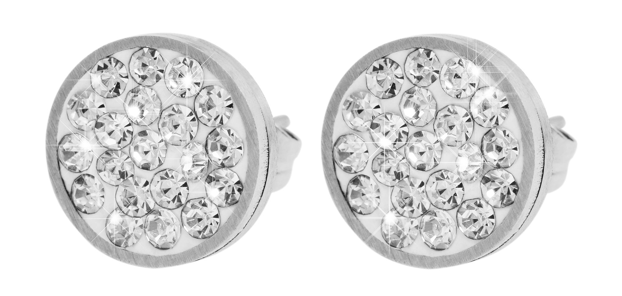 Een oorbel die elegantie en stijl combineert - dat is de "Ciara" oorbel. Deze roestvrijstalen oorsteker van het merk Akzent is rond met een diameter van 10 mm en een dikte van 2,5 mm. Het oppervlak is versierd met 37 witte similietstenen per oorsteker, wat zorgt voor een elegante touch. De oorstekers kunnen aan het oorgat worden bevestigd met een roestvrijstalen vleugelschroef. Extra houvast wordt geboden door siliconen oormoeren. Het materiaal is roestvrij en garandeert een lange levensduur.