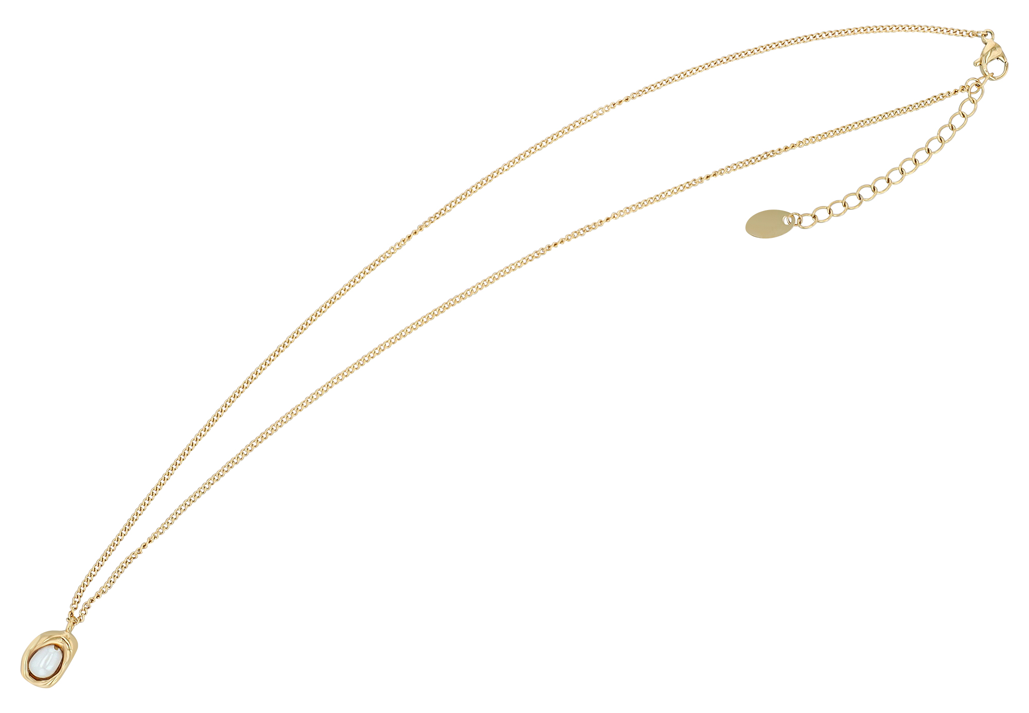 De ketting van 41 cm kan met nog eens 4,5 cm worden verlengd en kan dus op maat worden gemaakt. De praktische karabijnsluiting is een klassieker die houvast en comfort biedt. De hanger van de ketting bestaat uit een prachtige zoetwaterparel die bevestigd is aan een beweegbaar roestvrijstalen element (14 x 8 x 6 mm).