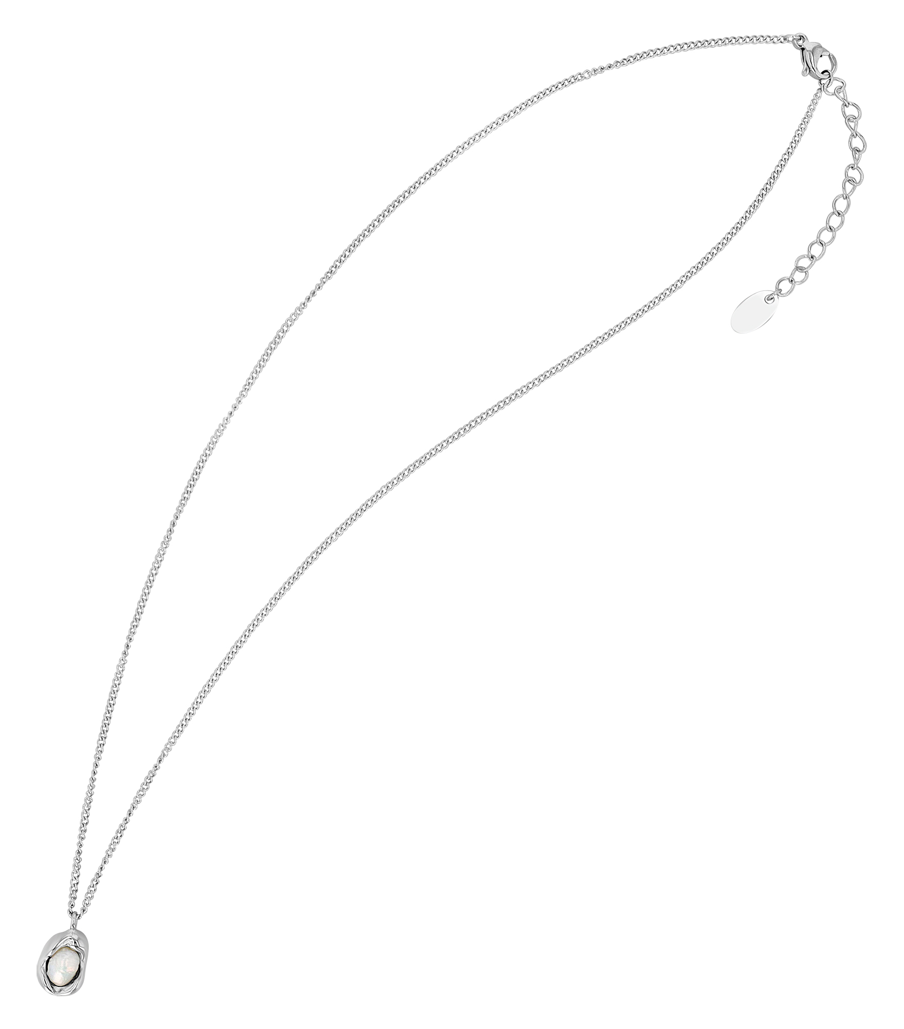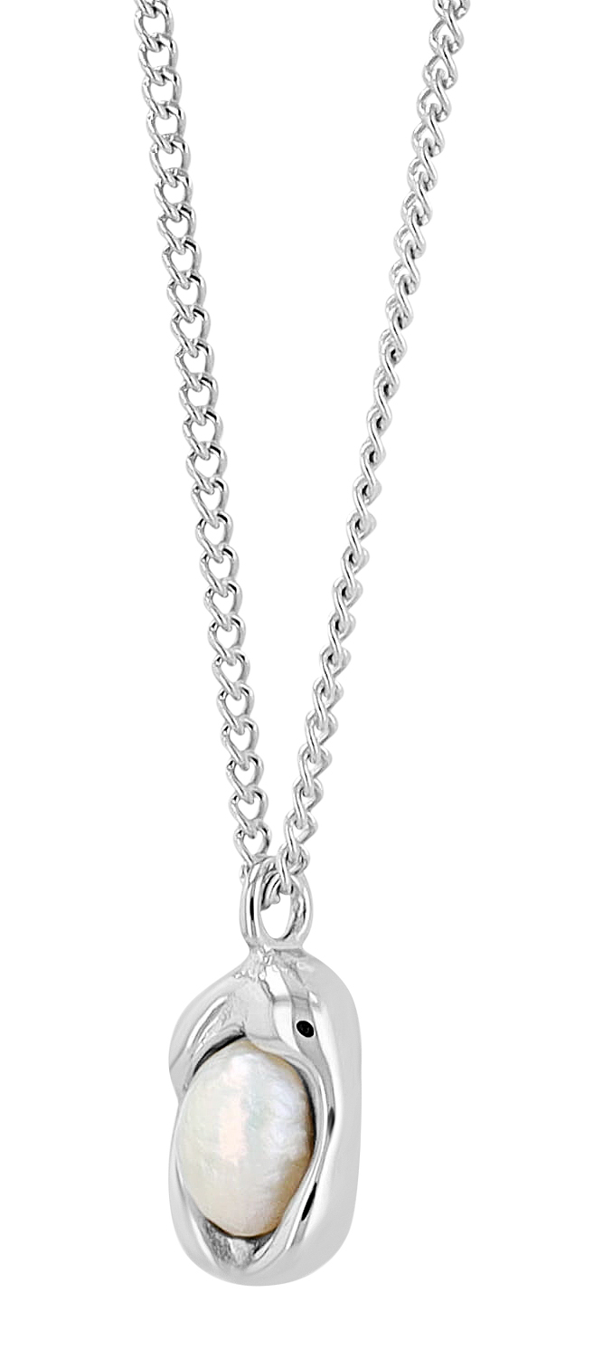 De ketting van 41 cm kan met nog eens 4,5 cm worden verlengd en kan dus op maat worden gemaakt. De praktische karabijnsluiting is een klassieker die houvast en comfort biedt. De hanger van de ketting bestaat uit een prachtige zoetwaterparel die bevestigd is aan een beweegbaar roestvrijstalen element (14 x 8 x 6 mm).