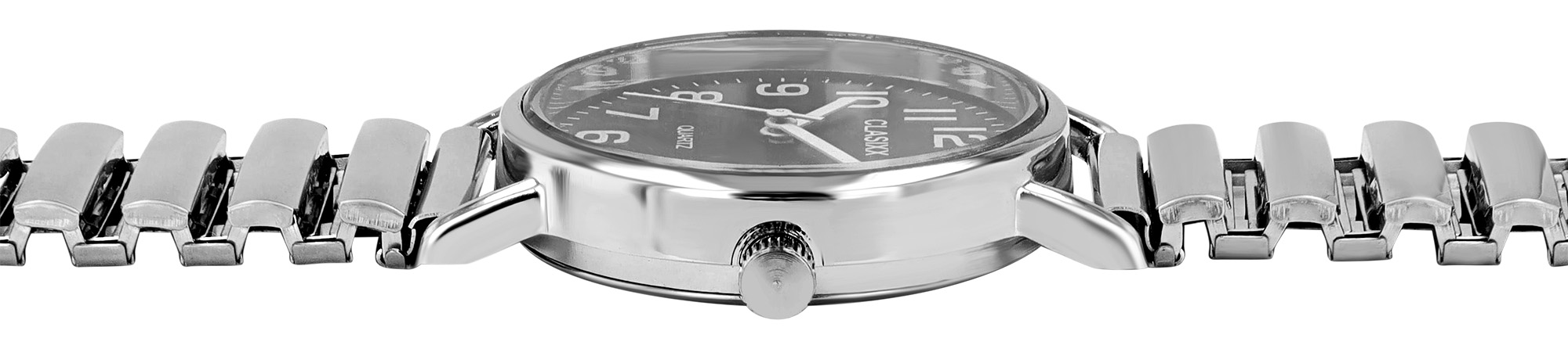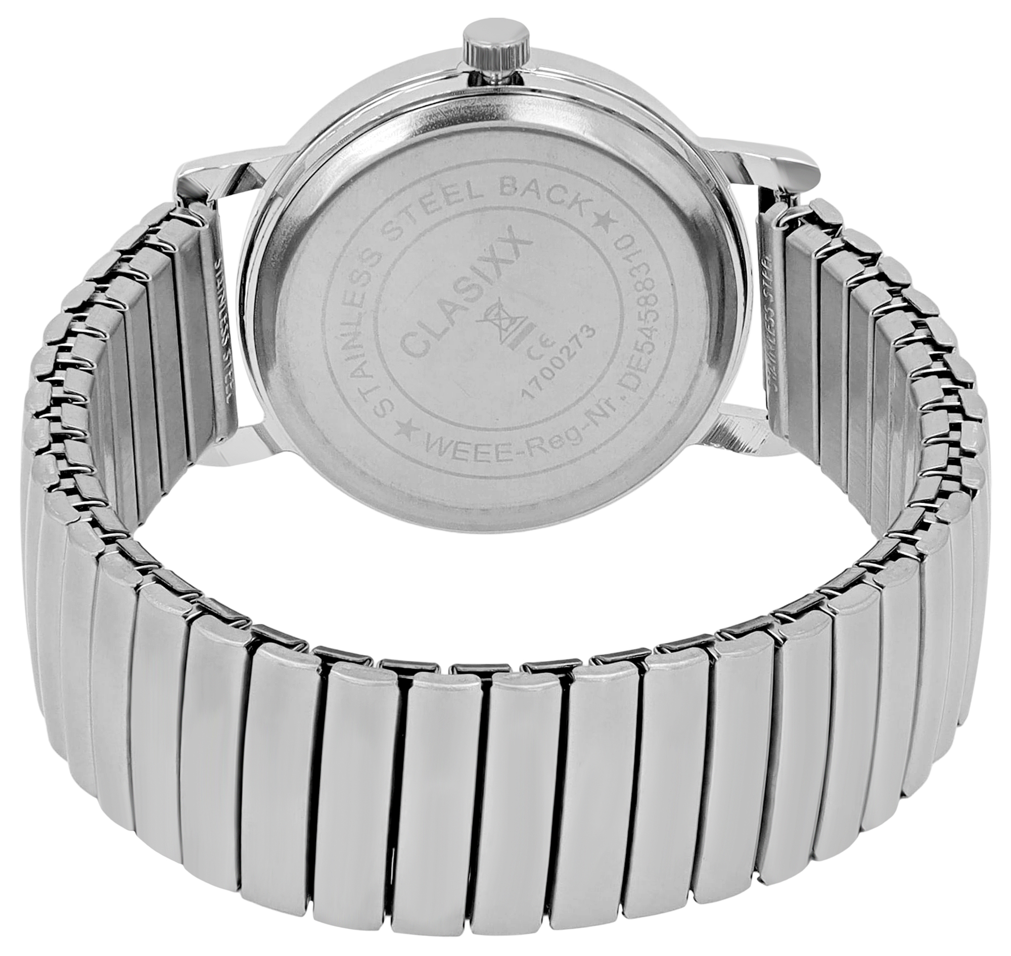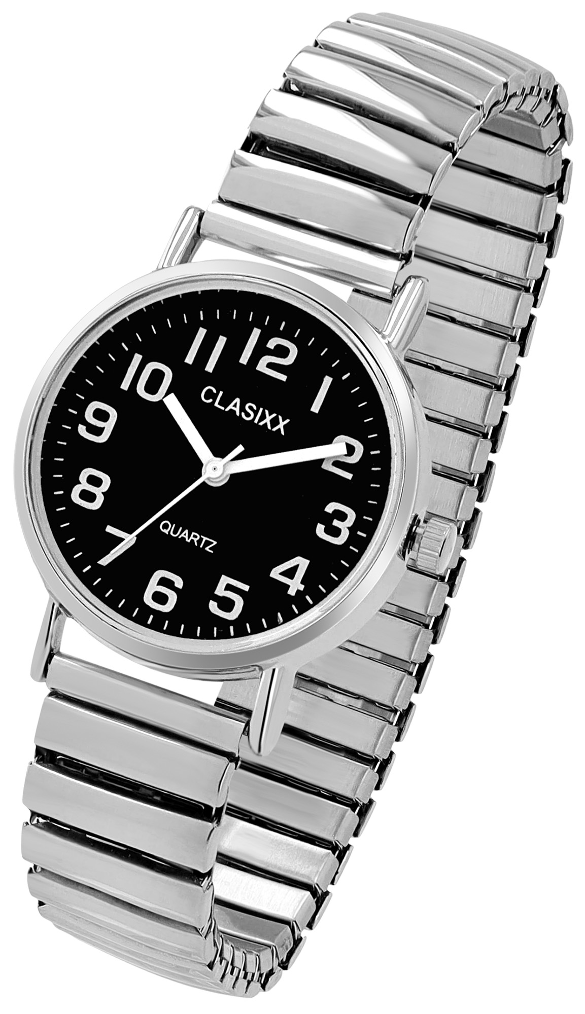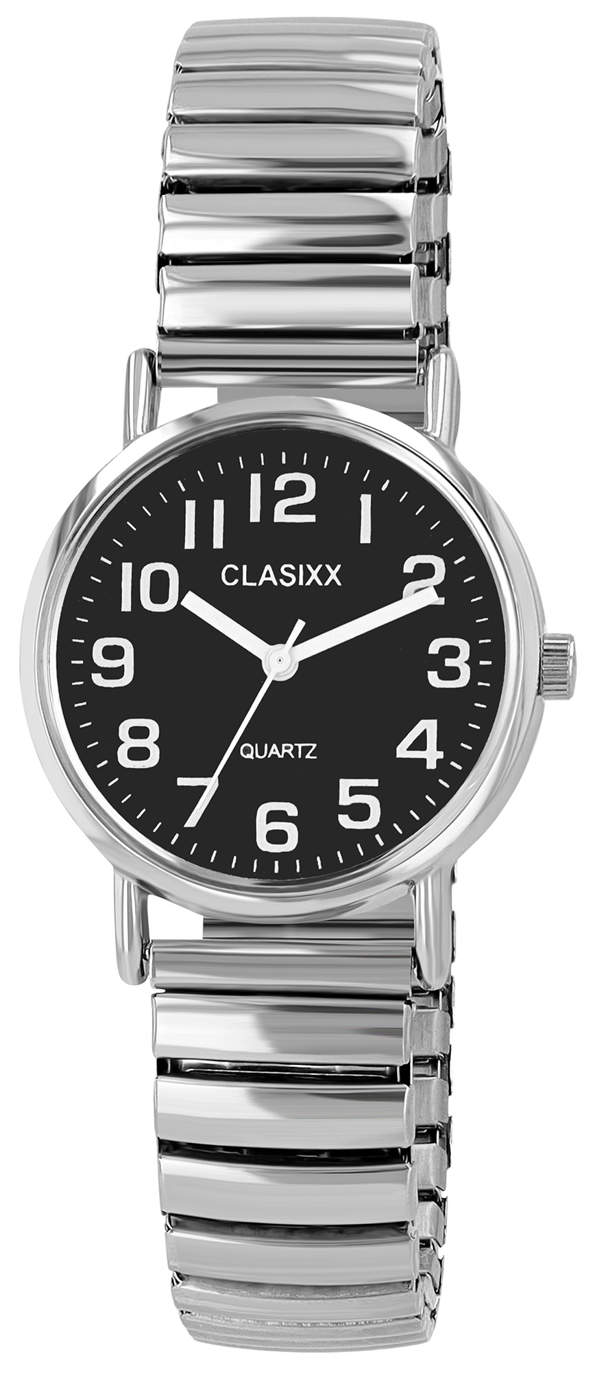 Productinformatie "Clasixx dameshorloge met trekband, zilverkleurig/zwart"