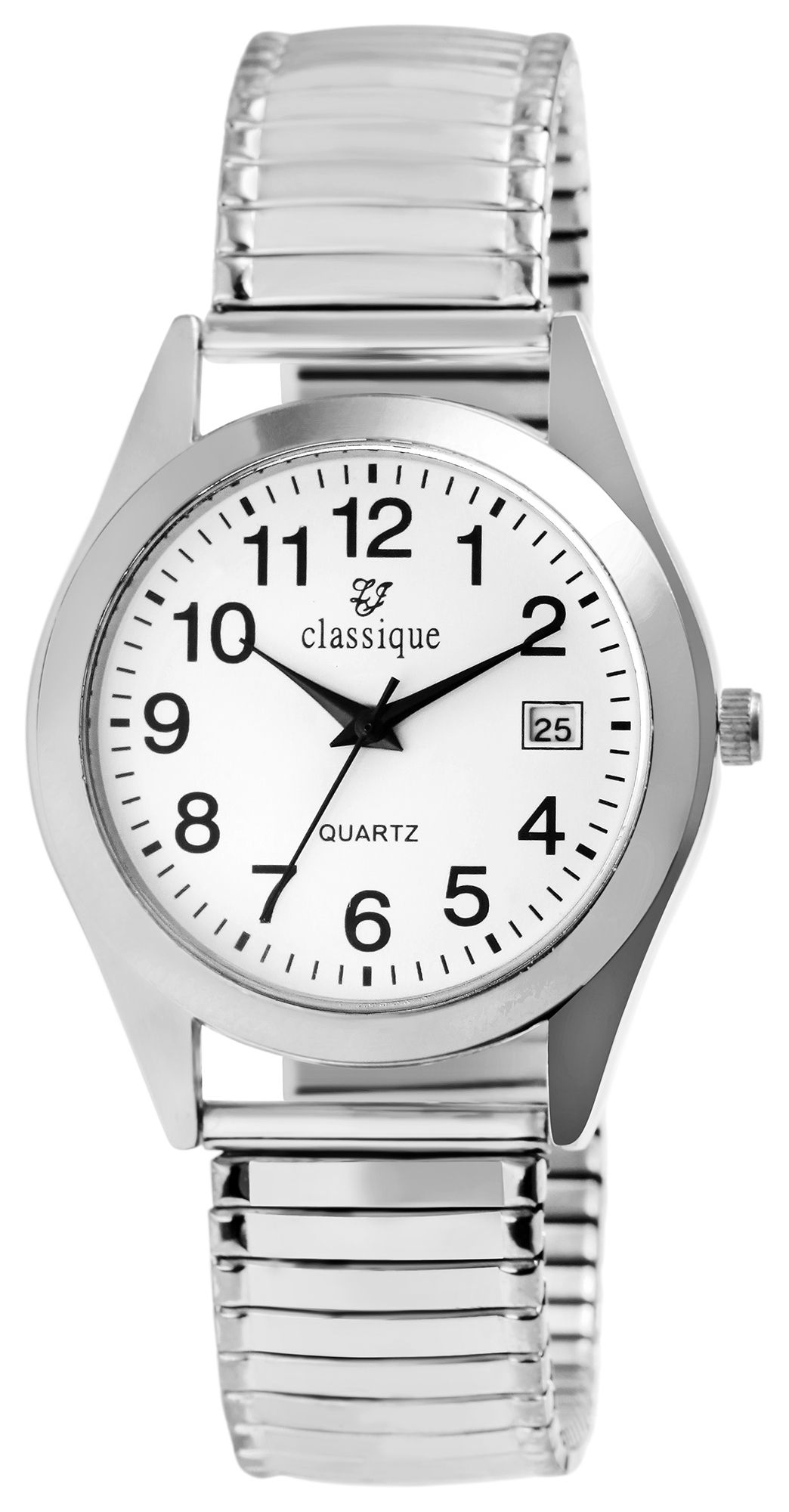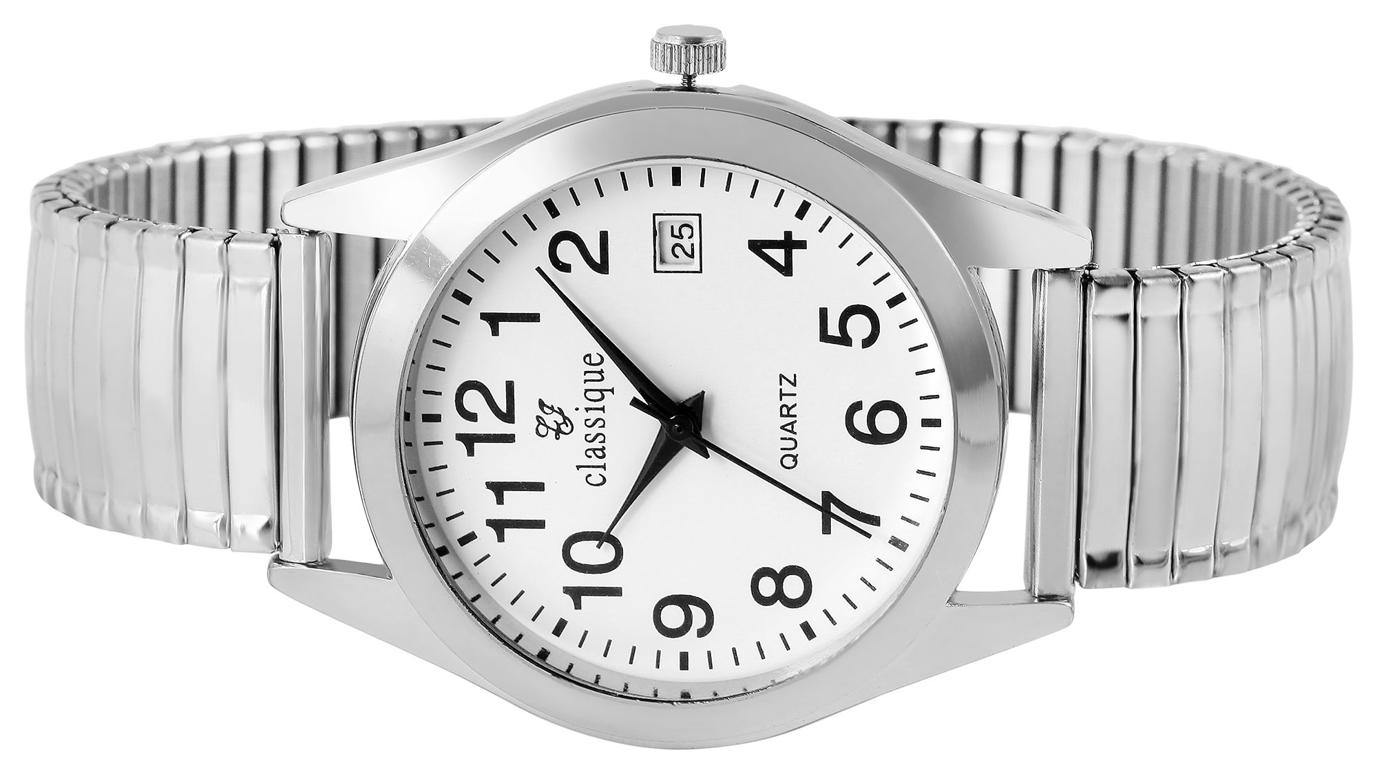 Productinformatie "Classique Herrenuhr mit Edelstahlzugarmband, Datumsanzeige, silberfarben/weiß"