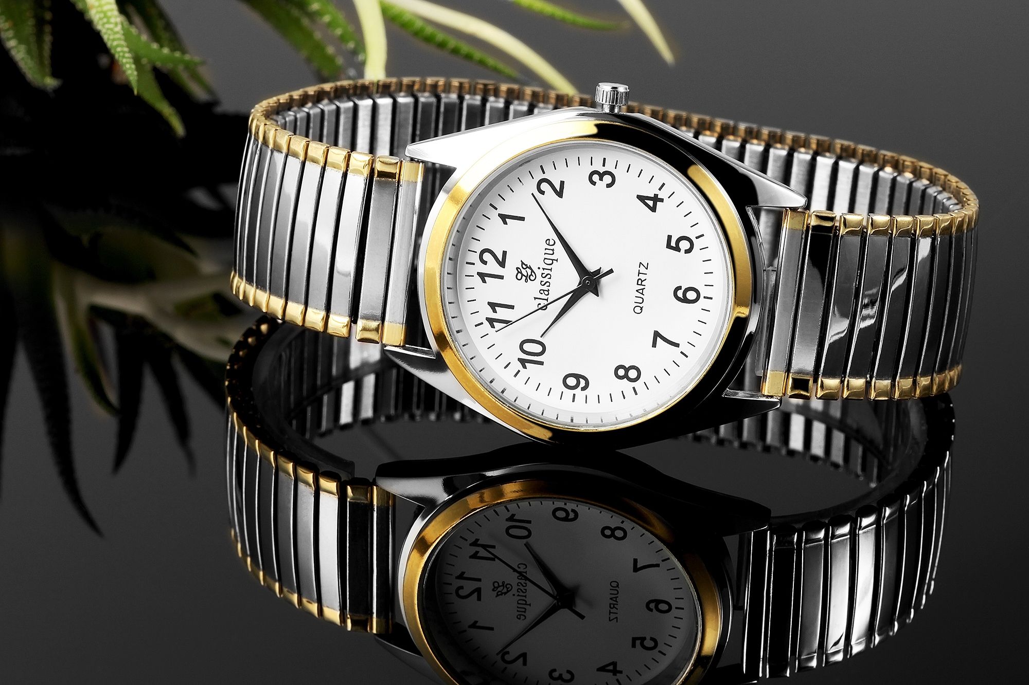 Productinformatie "Classique Herrenuhr mit Edelstahlzugarmband, bicolor"
