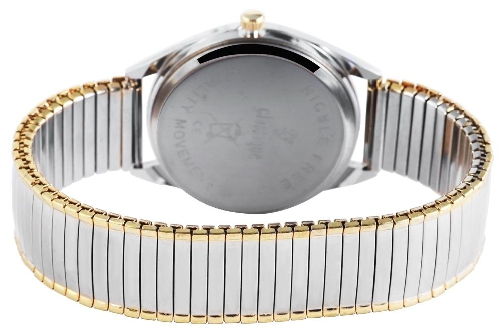 Het analoge herenpolshorloge met 3 wijzers van het merk Classique heeft een hoogwaardig kwartsuurwerk. De zilvergoudkleurige roestvrijstalen trekband is 16 mm breed bij de lug en is bijzonder comfortabel en gemakkelijk over de pols te trekken dankzij de flexibele band. De totale lengte van het horloge is 20 cm. De metalen kast in bicolor met mineraalglas heeft een diameter van 36 mm en een kasthoogte van 9 mm. De achterkant van de kast is gemaakt van roestvrij staal. Dankzij de effen zwarte wijzerplaat en de duidelijke lay-out is de tijd in één oogopslag af te lezen. De wijzers en indexen zijn goudkleurig en maken de algehele look van het polshorloge compleet. Het horloge heeft ook een datumweergave op drie uur. Dit tijdloze horlogemodel is een echte klassieker en daarom ideaal als cadeau voor een geliefde.
