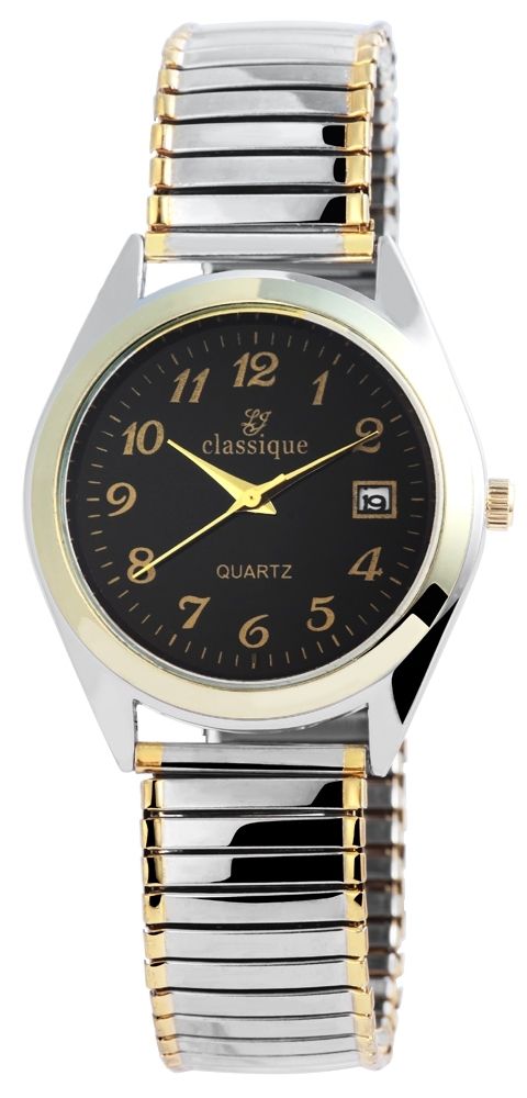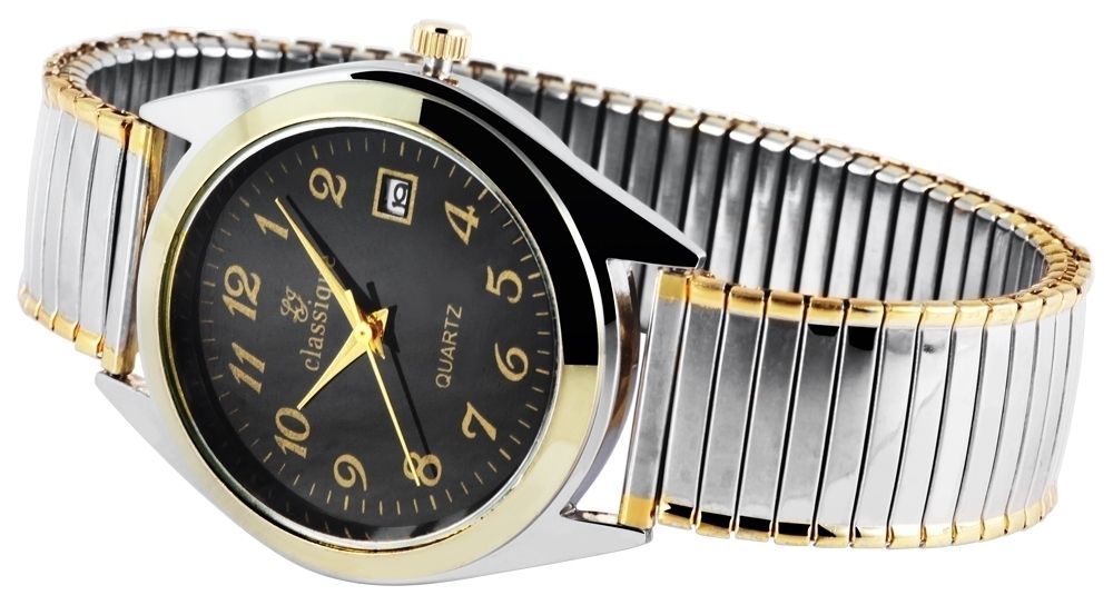 Productinformatie "Classique herenhorloge met roestvrijstalen armband, datumaanduiding, tweekleurig/zwart"