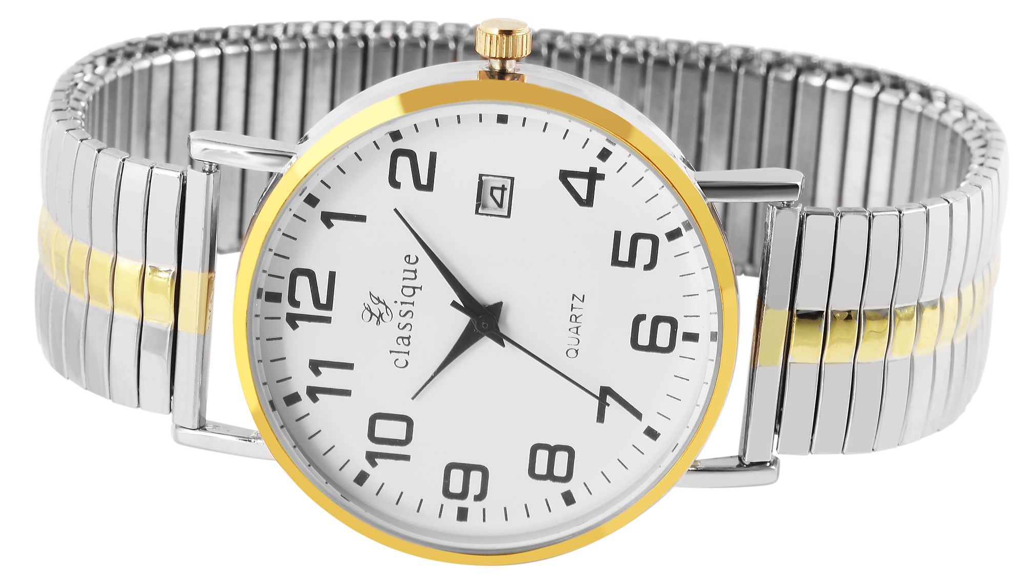 Het analoge herenpolshorloge met 3 wijzers van het merk Classique heeft een hoogwaardig kwartsuurwerk. De roestvrijstalen trekband is 20 mm breed bij de lug en is bijzonder comfortabel en gemakkelijk over de pols te trekken dankzij de flexibele band. De totale lengte van het horloge is 20 cm. De kast met mineraalglas heeft een diameter van 38 mm en is 9 mm hoog. De achterkant van de kast is gemaakt van roestvrij staal. Dankzij de eenvoudige wijzerplaat en duidelijke lay-out is de tijd in één oogopslag af te lezen. Het horloge heeft ook een datumweergave op drie uur.