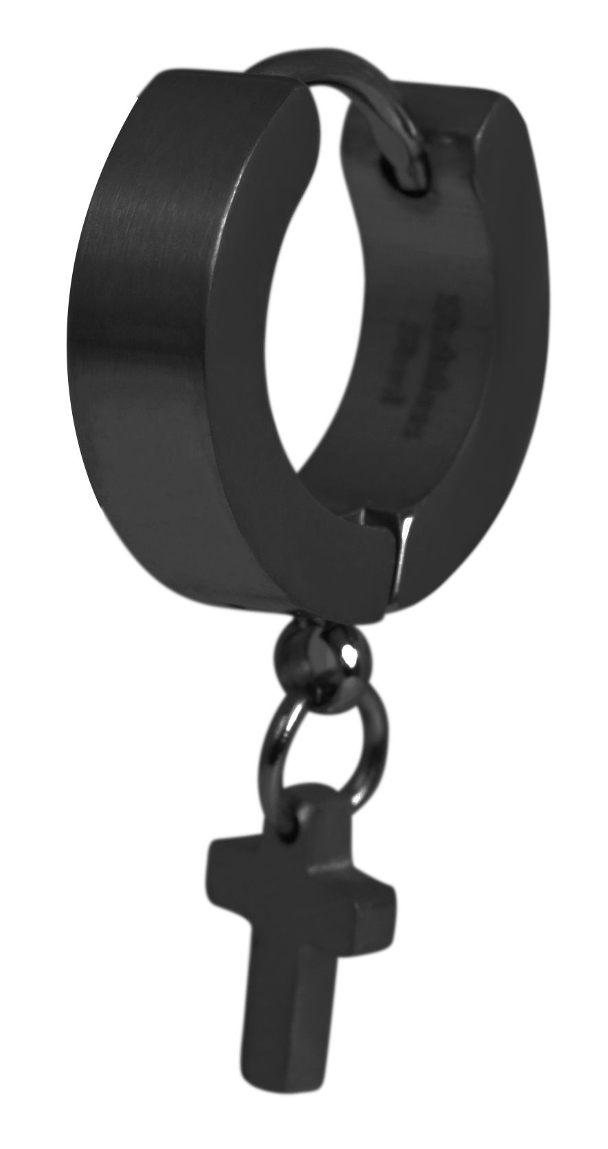 Productinformatie ""Clyrst", Edelstahlcreole mit Kreuzanhänger, schwarz"