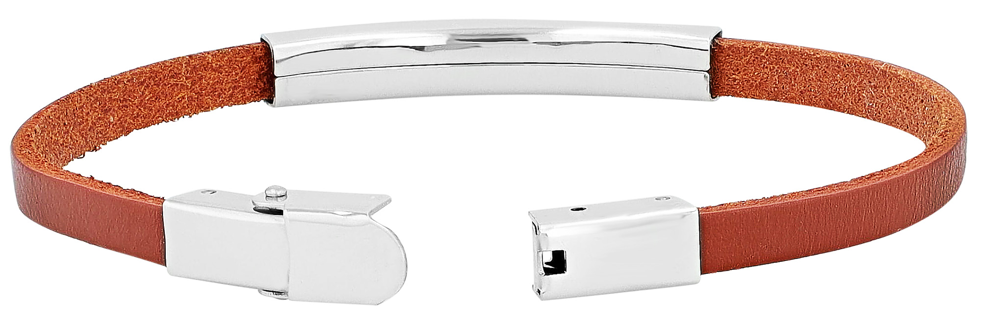 De echt lederen armband van het merk Akzent is gemaakt van een 7 mm brede lederen band die in het midden is versierd met een eenvoudig zilverkleurig roestvrijstalen element. Dit is ideaal om te gebruiken als graveerplaatje. De totale lengte van de sieradenarmband is 22 cm en hij is 5 mm dik.