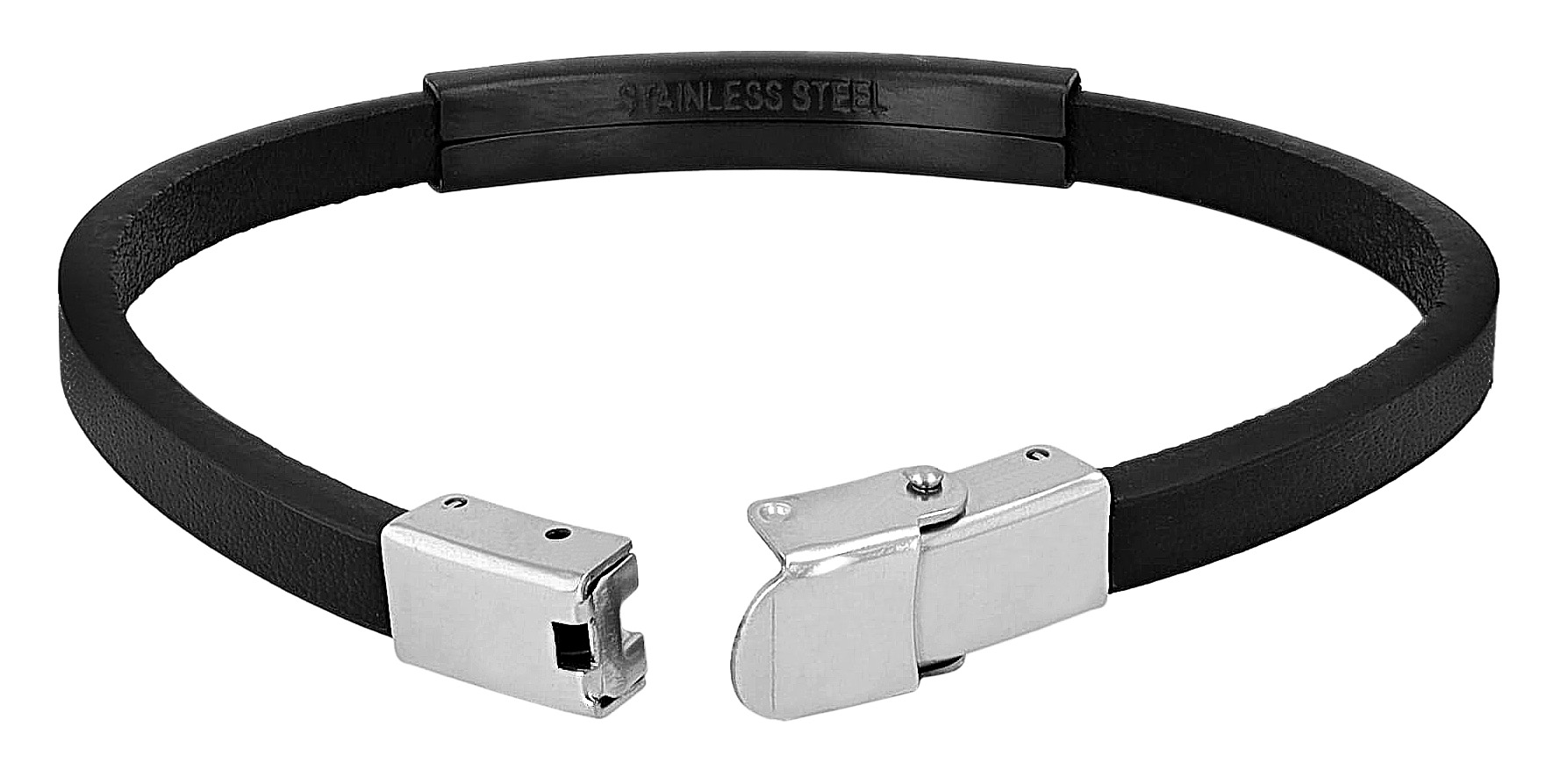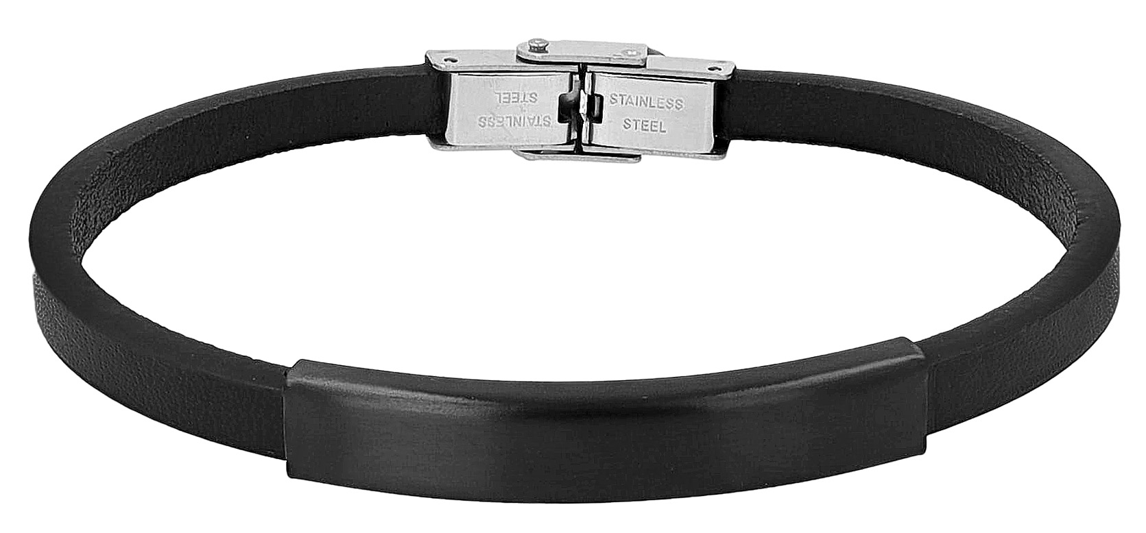 Productinformatie ""Colin", Echtlederarmband, Edelstahlgravurplatte, schwarz, 21 cm"