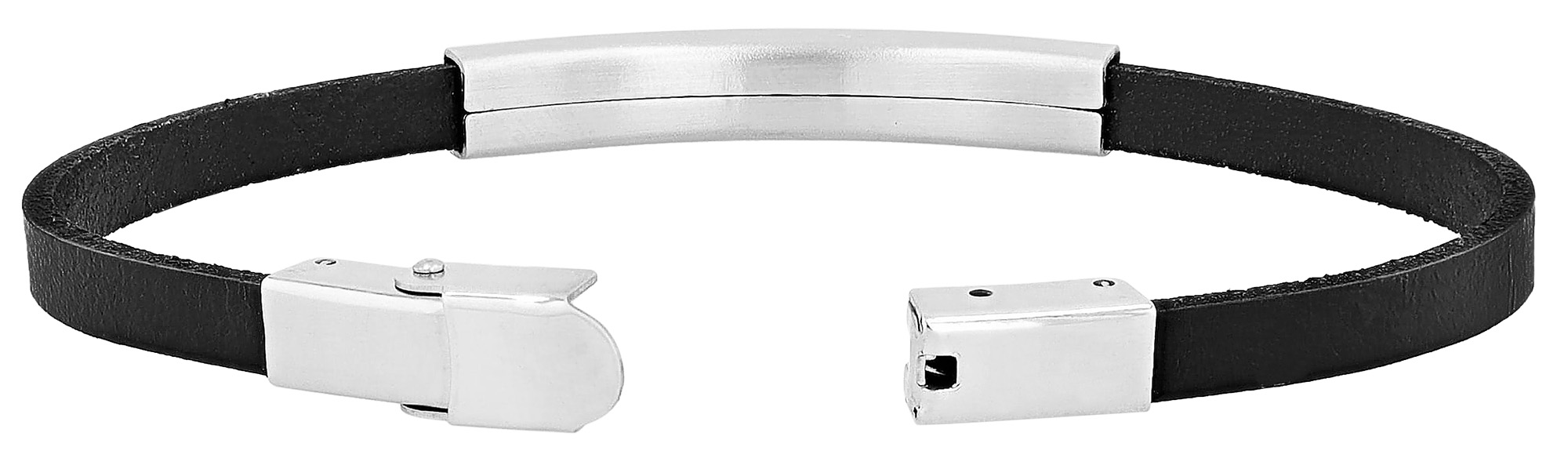 Productinformatie ""Colin", Echtlederarmband, Edelstahlgravurplatte, schwarz/silberfarben, 21 cm"