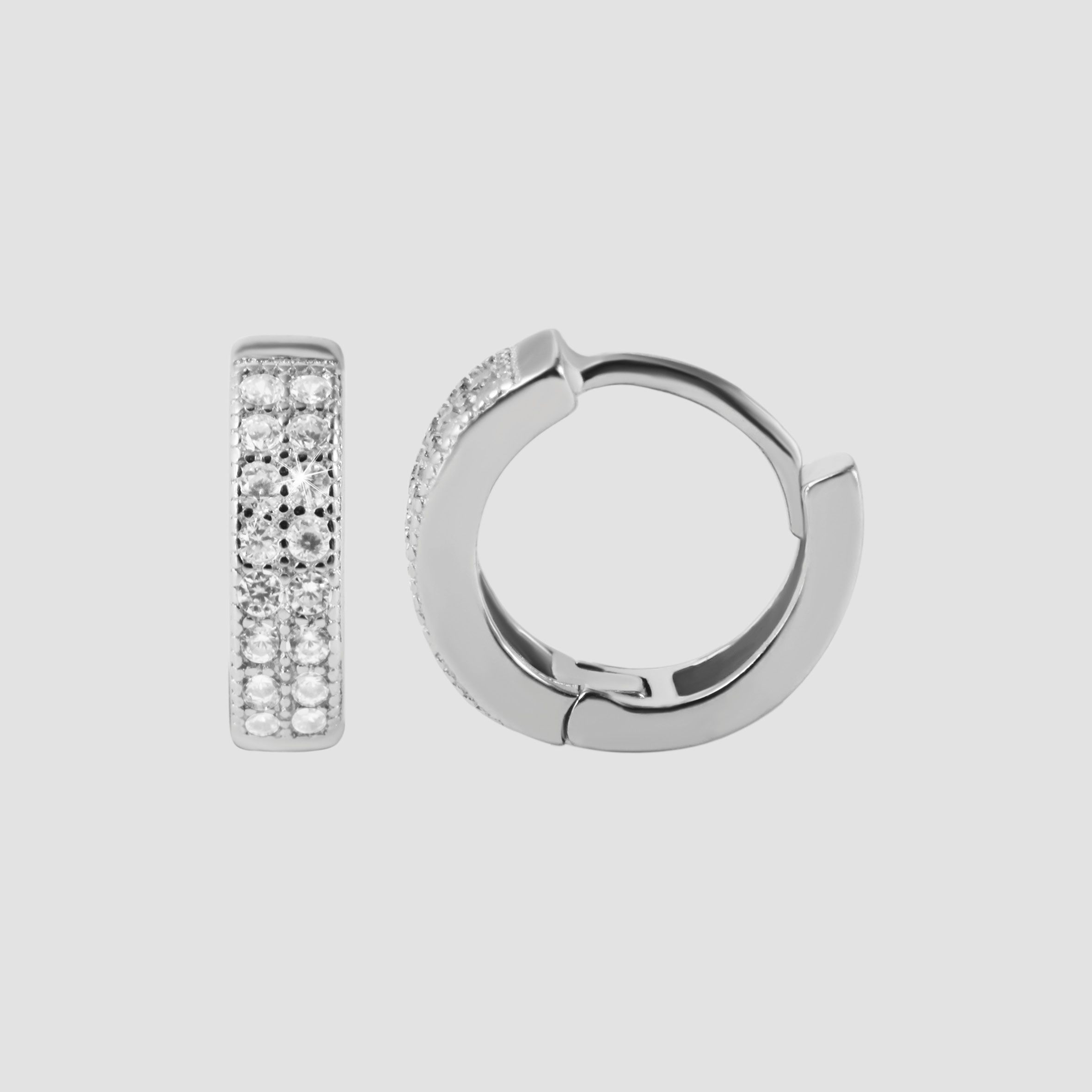 De scharnierende hoepel oorbellen zijn gemaakt van 925 Sterling zilver en zijn bovendien afgewerkt met een hoogwaardige rhodium coating. Dit laagje voorkomt dat het materiaal aanslag krijgt en zorgt bovendien voor een langdurige glans. De voorkant van de gepolijste hoepeloorbellen is voorzien van 16 fonkelende zirkonia steentjes, die de eenvoudige oorbellen een vrouwelijke touch geven. Ze worden vastgemaakt met een praktische scharniersluiting, waardoor ze gemakkelijk aan en uit te doen zijn. De maat resulteert uit een diameter van 8 mm, een breedte van 3 mm en een dikte van 2 mm. Dit product wordt geleverd op een witte juwelenkaart. De afmetingen zijn 38 x 55 mm en ideaal om te presenteren in een passende display of om cadeau te geven.