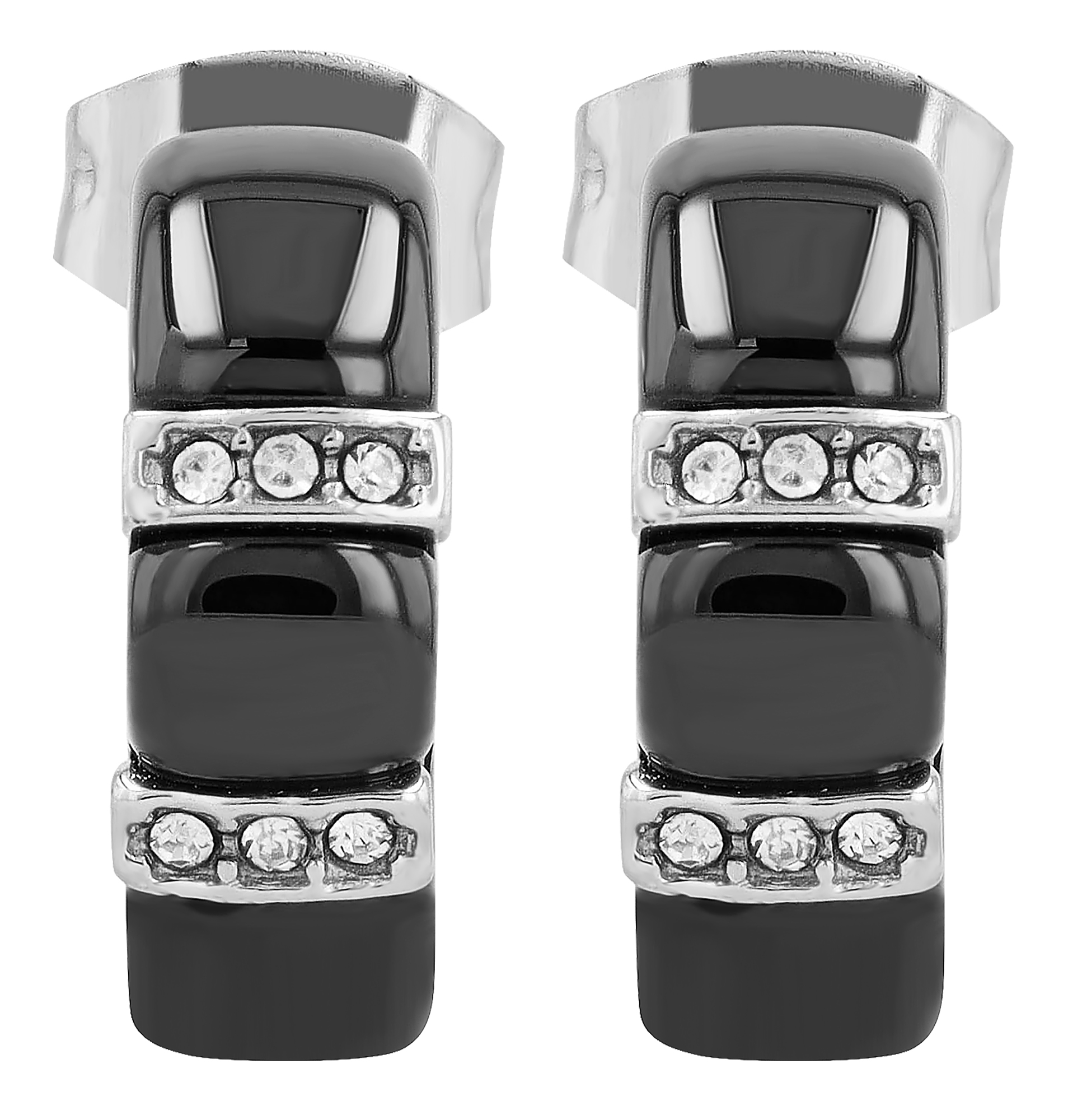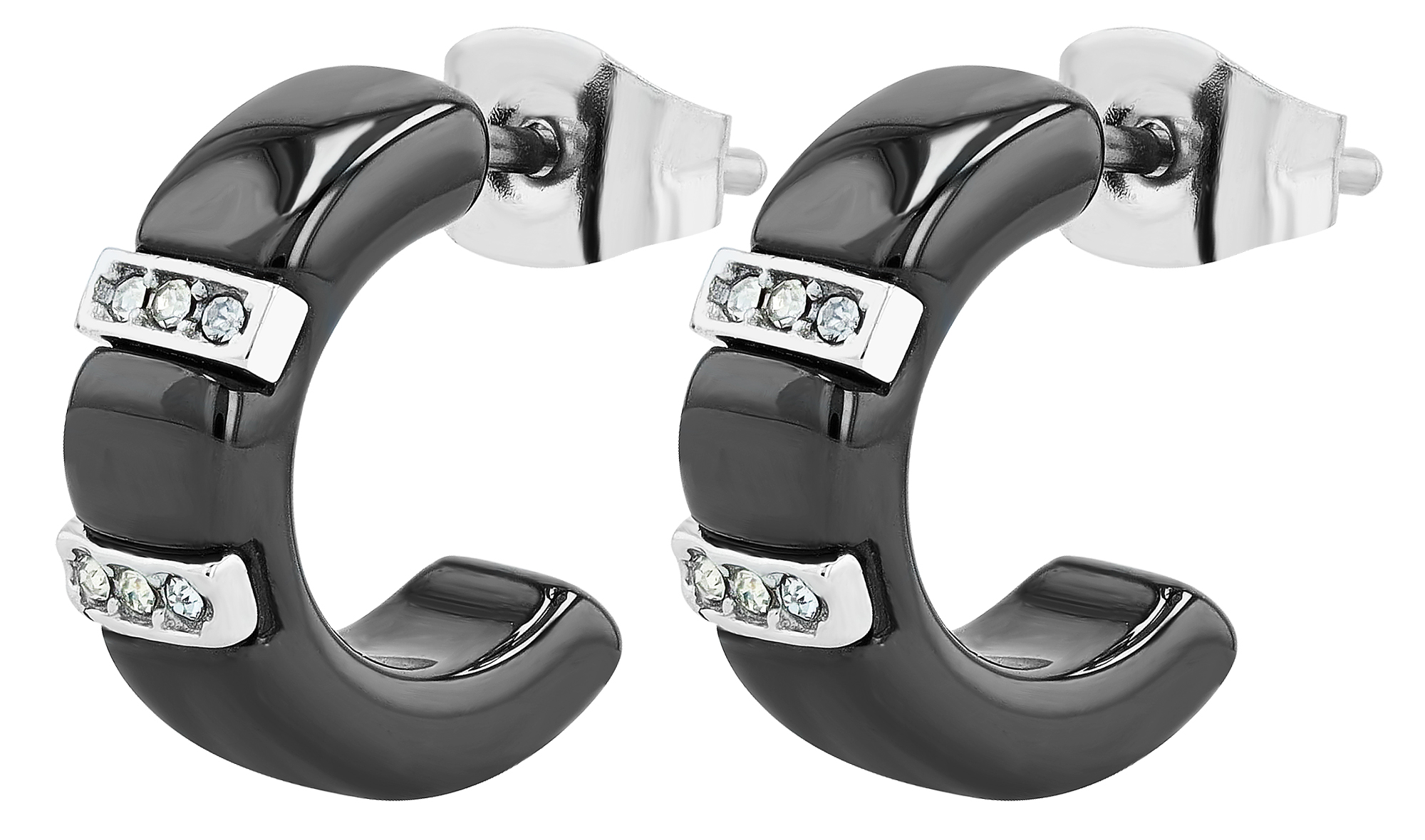 Productinformatie ""Cristin" Akzent Edelstahl-Keramik Ohrringe, Zirkonia, schwarz"