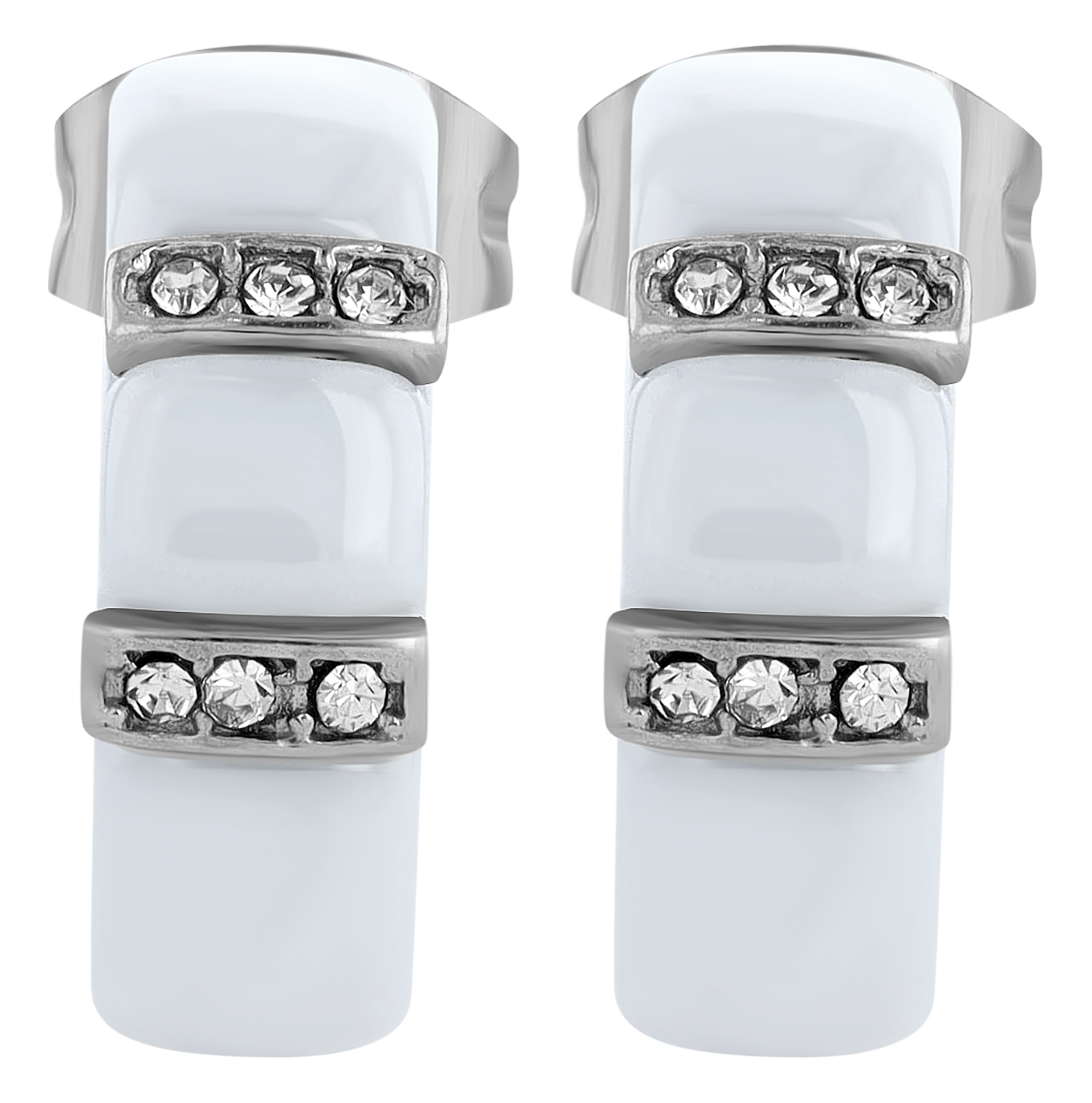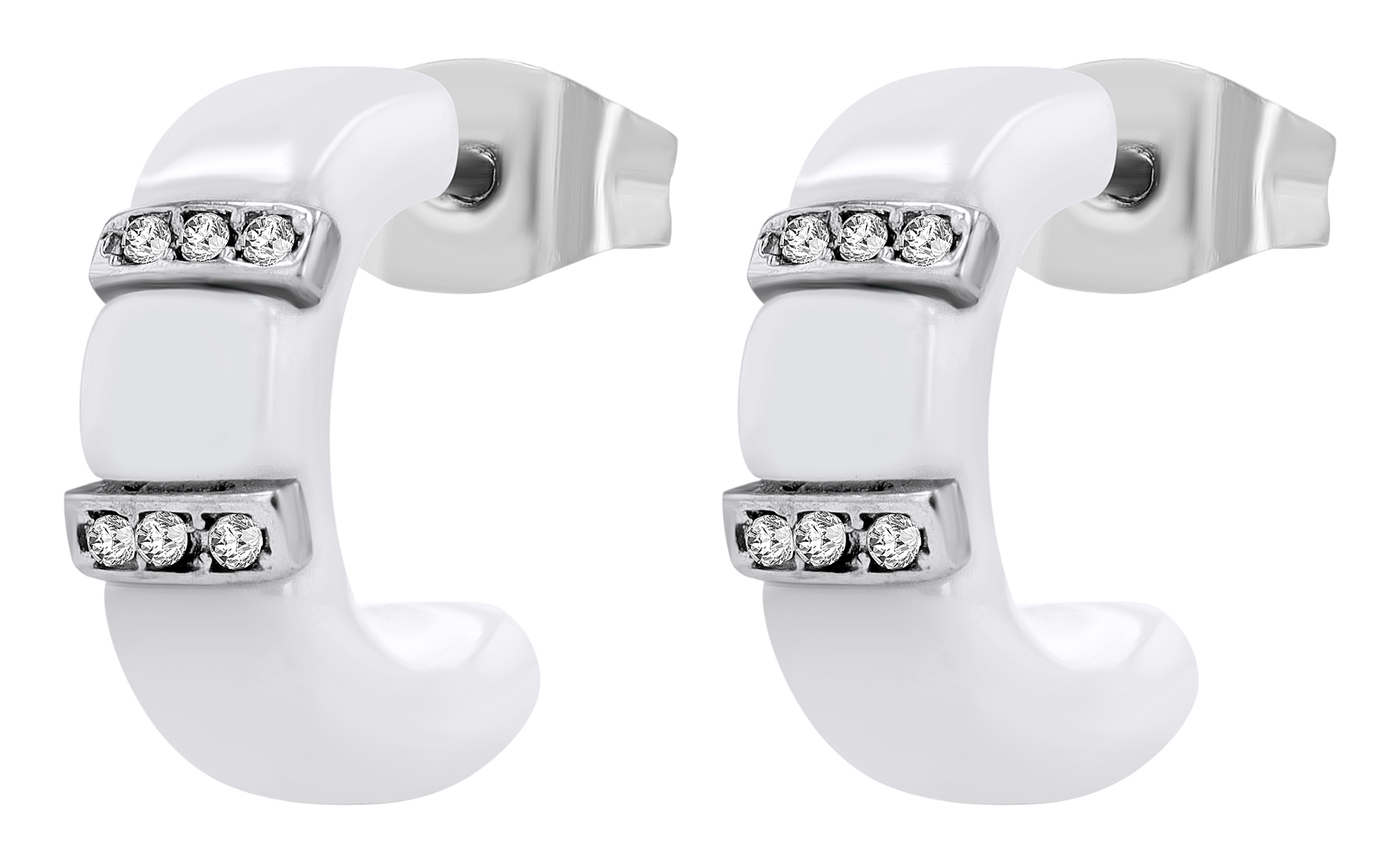 Productinformatie ""Cristin" Akzent Edelstahl-Keramik Ohrringe, Zirkonia, weiß"