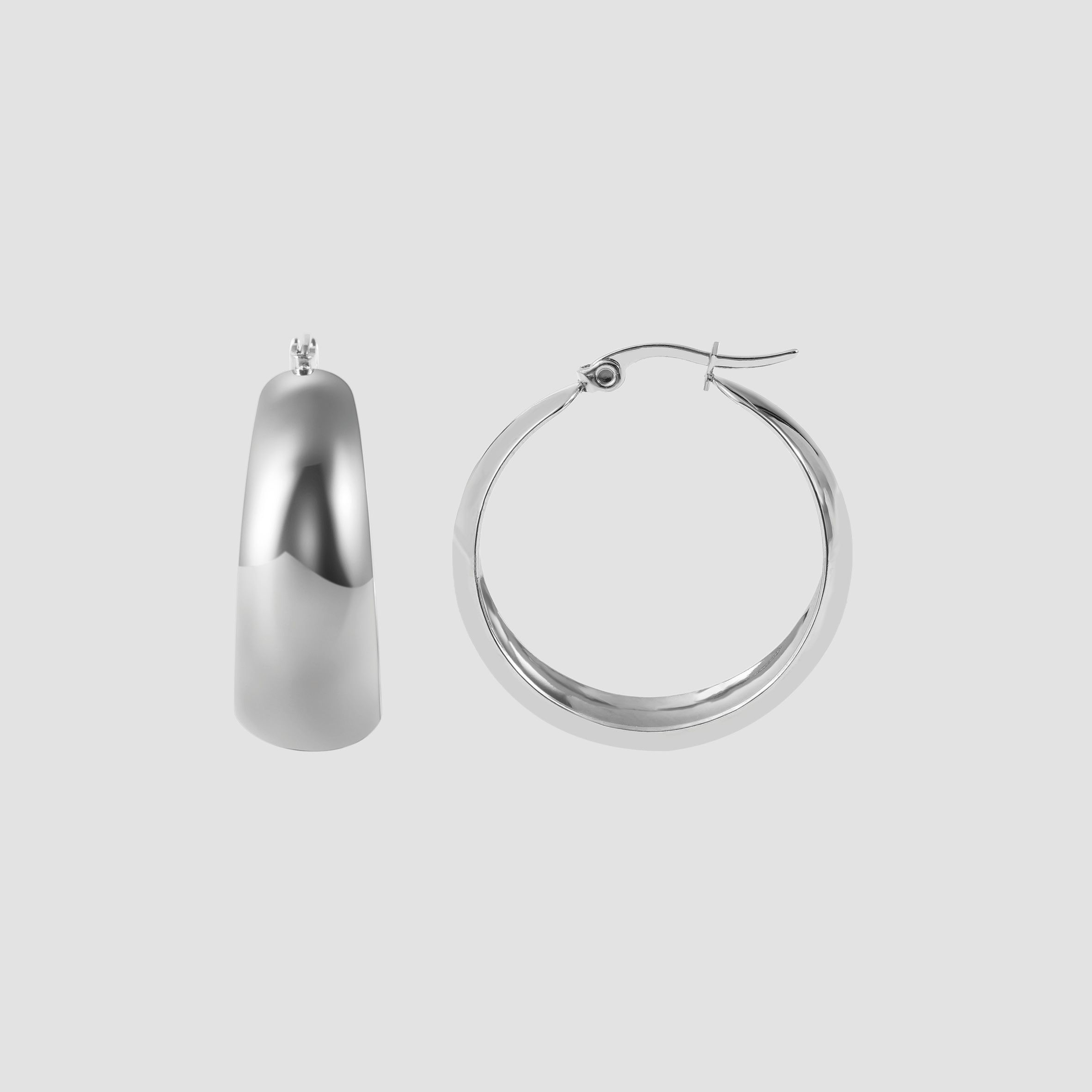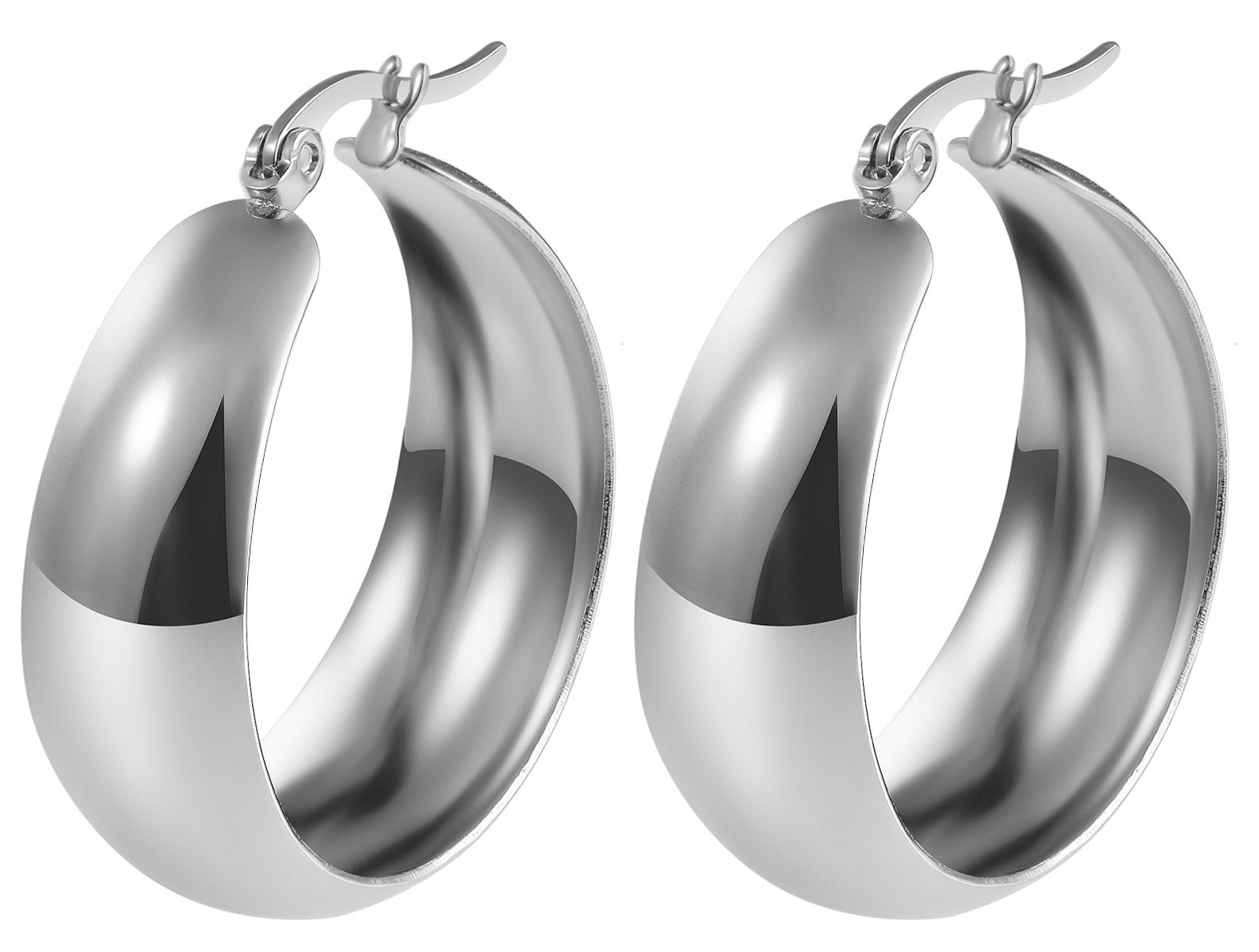 De zilverkleurige roestvrijstalen hoepeloorbellen van het merk Akzent zijn gemaakt van roestvrij staal. Ze zijn 11 mm breed op het breedste punt en versmallen naar de uiteinden toe. Daar zijn ze 7 mm breed. De diameter is 31 mm. Ze kunnen worden geopend en gesloten met een sluiting, die ook van roestvrij staal is. De materiaaldikte van de grote hoepel oorbellen is slechts 1 mm, waardoor ze stevig en toch licht zijn, wat ze comfortabel maakt om te dragen. Het oppervlak van de modieuze hoepeloorbellen is hoogglans gepolijst. Ze zijn perfect te combineren met elke outfit en elke gelegenheid.