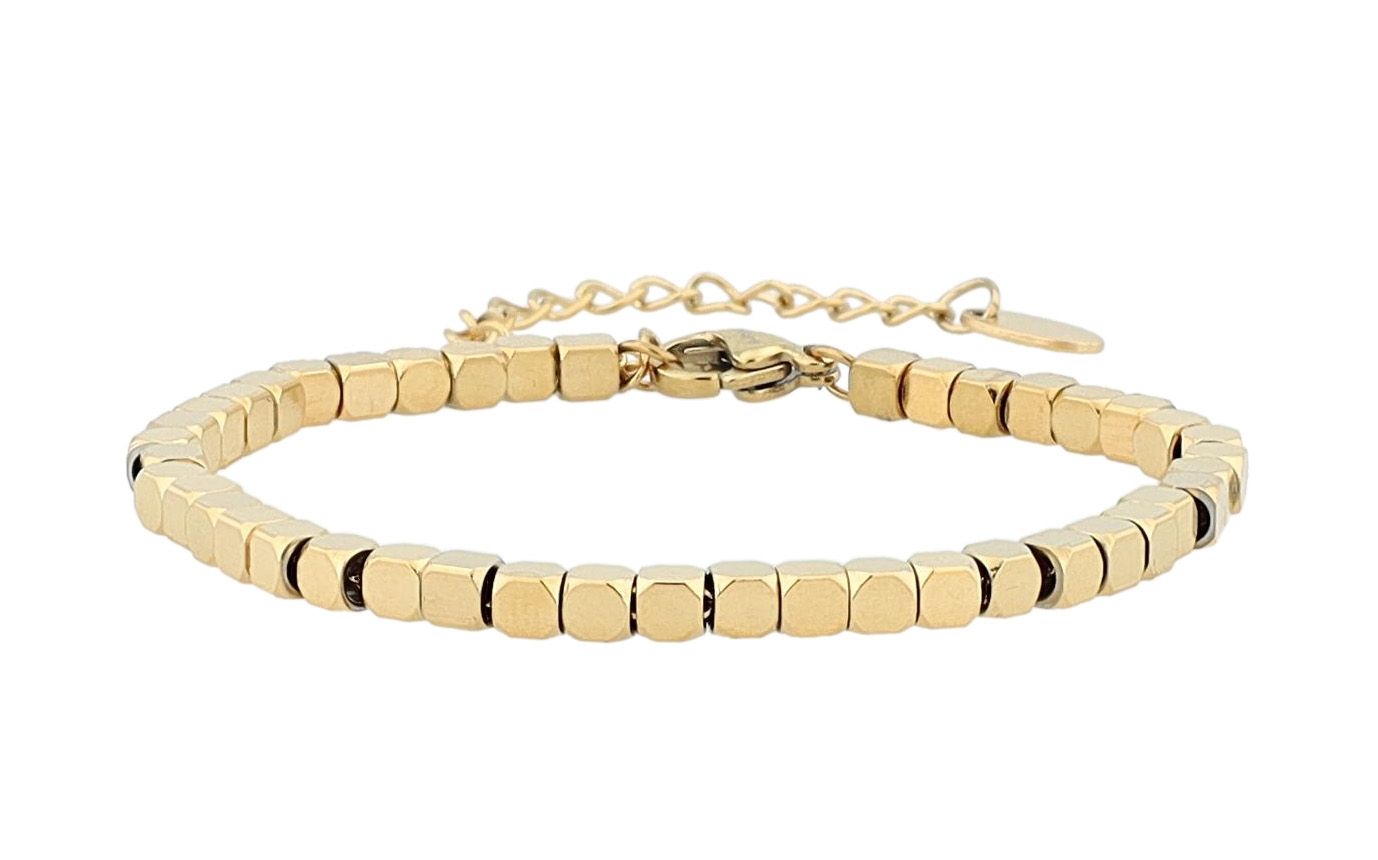 Productinformatie ""Cube" - Stainless steel ball armband, 15 + 5 cm, kubus armband, goudkleurig"