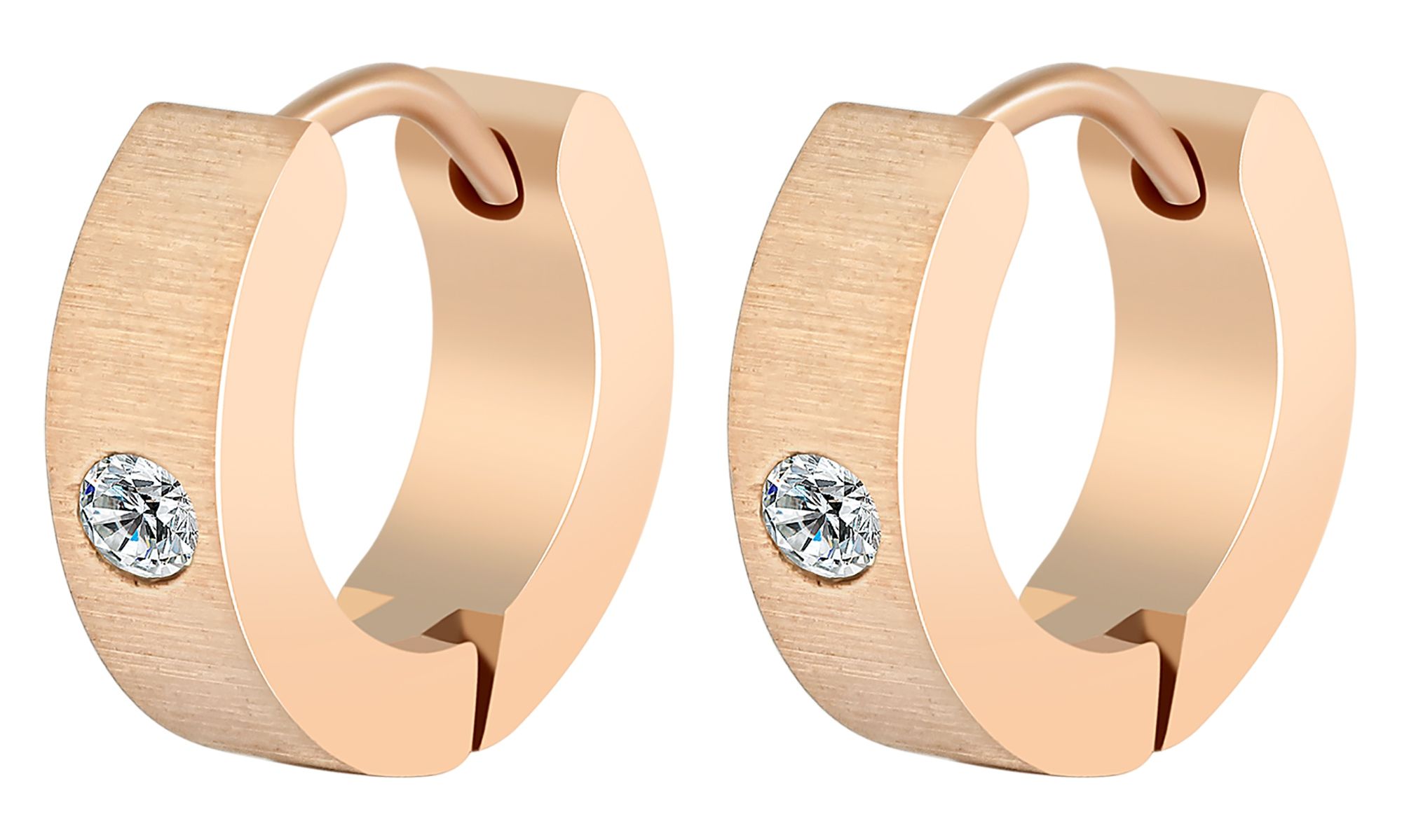 Productinformatie ""Dalma" scharnierende oorbellen, roestvrij staal, Simili, Ø 9mm, roségoudkleurig"