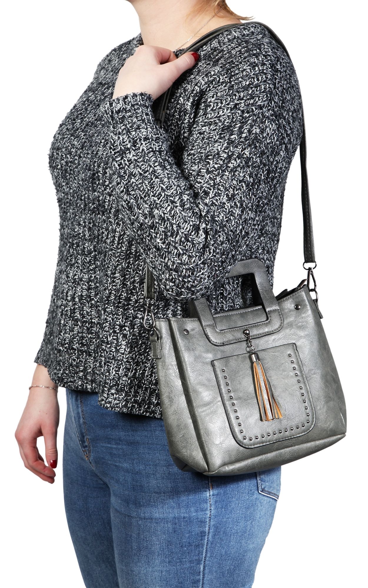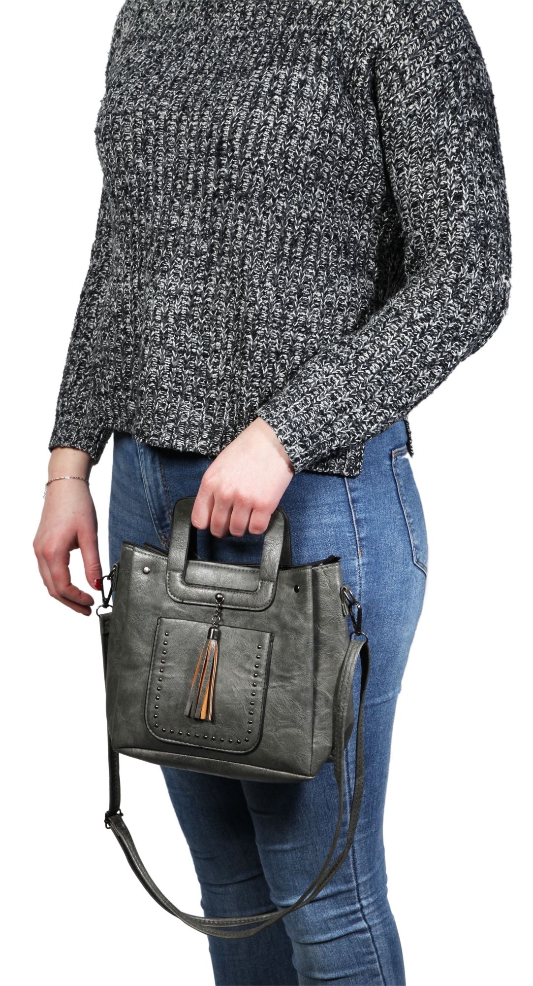Productinformatie "Damen Handtasche aus Lederimitat, Maße: 20,5 x 19 x 10 cm"