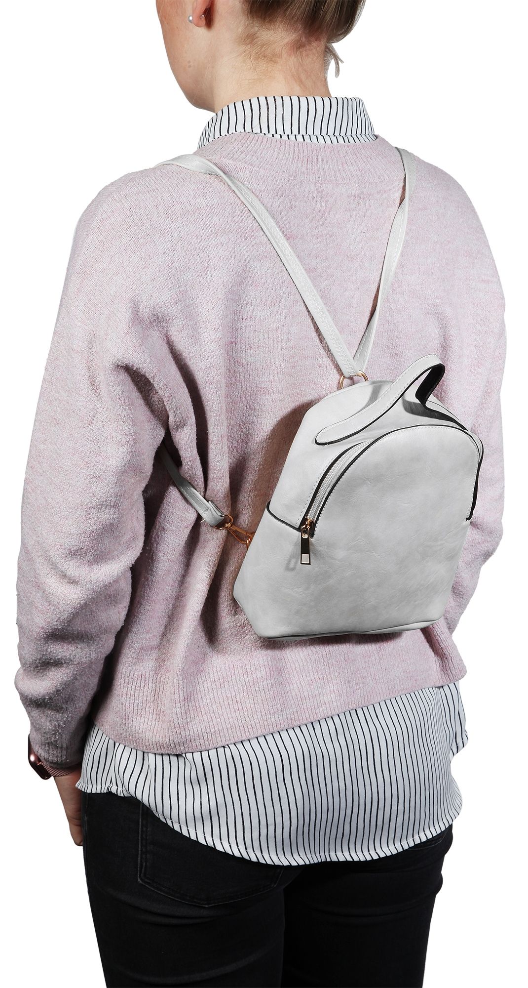 Productinformatie "Damen-Rucksack aus Lederimitat, weiß, Länge: 21,5 cm / Breite: 19,0 cm / Stärke: 8,0 cm"