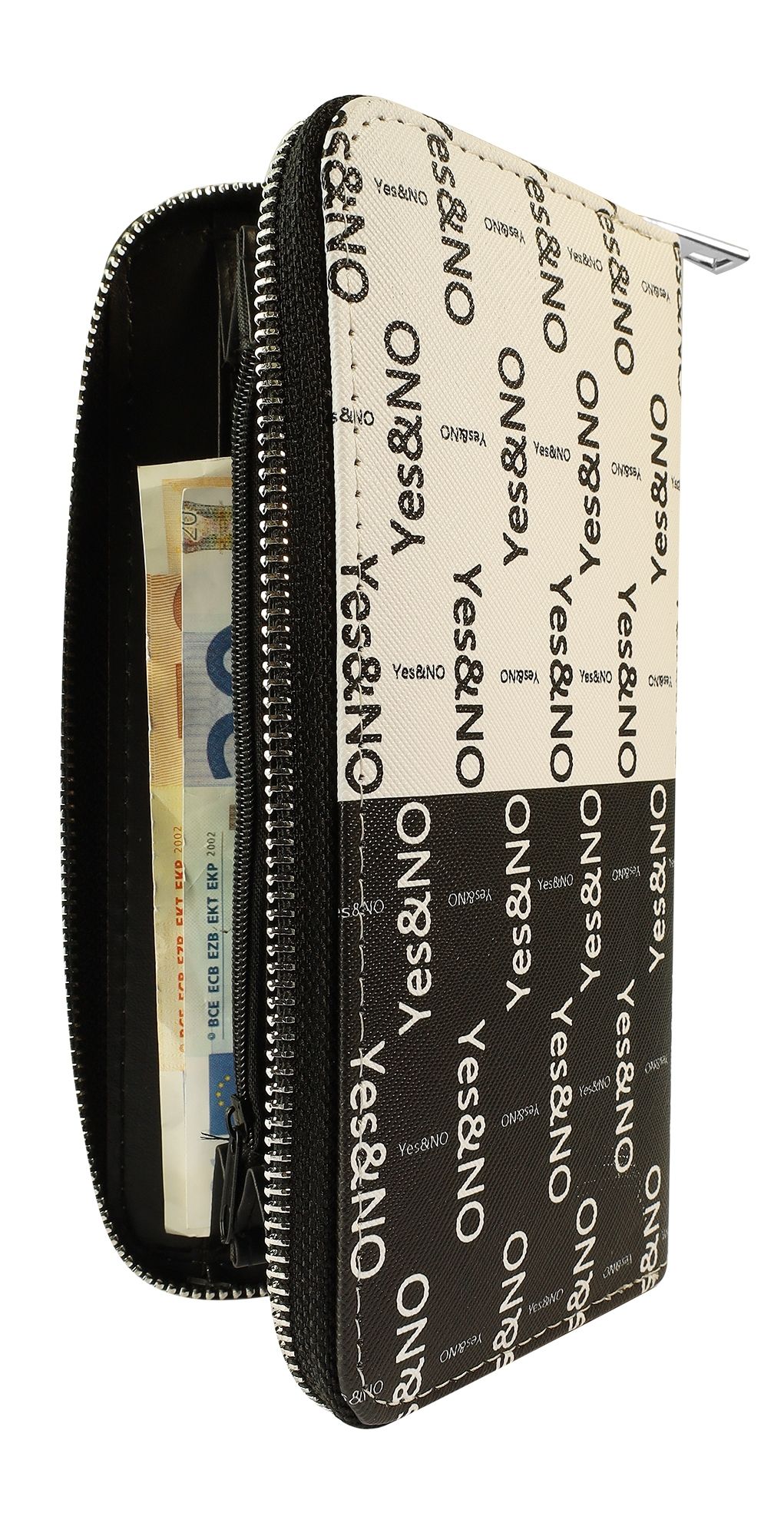 Productinformatie "Damesportemonnee "Yes&No" van imitatieleer, wit/zwart"