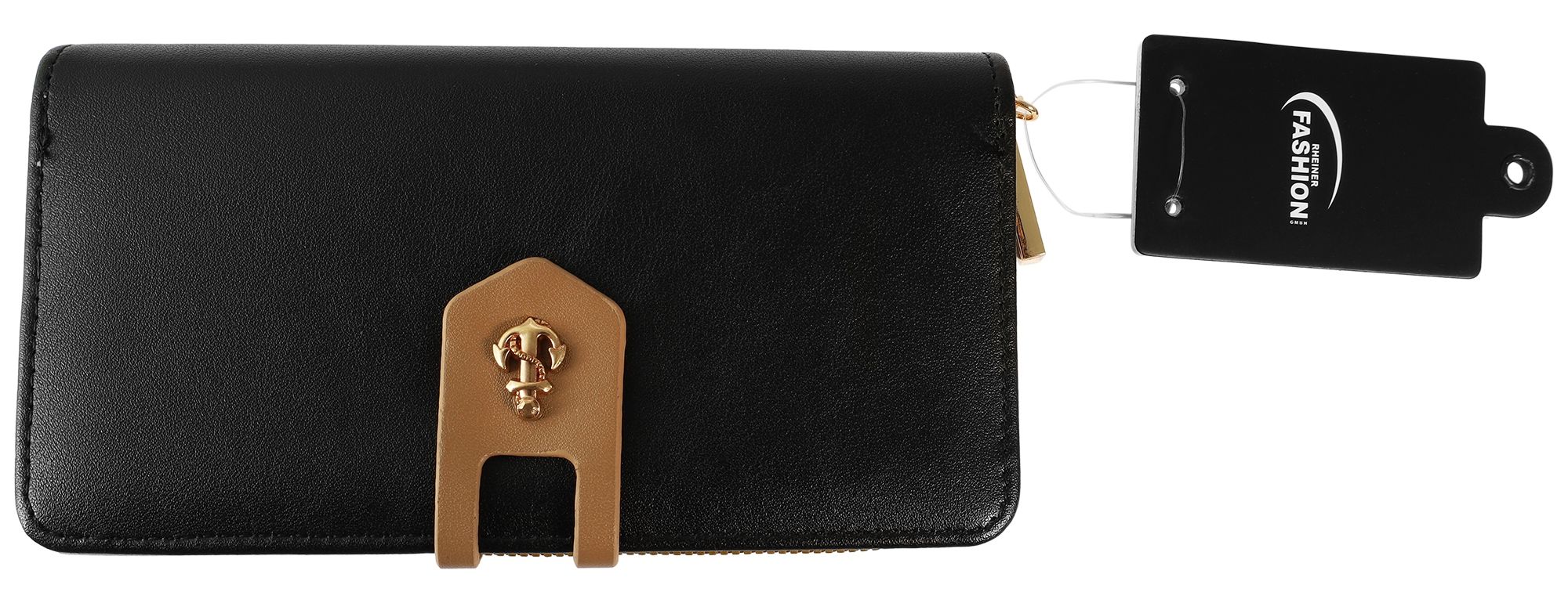 Productinformatie "Damengeldbörse aus Lederimitat, Überschlag mit Ankerelement, schwarz"