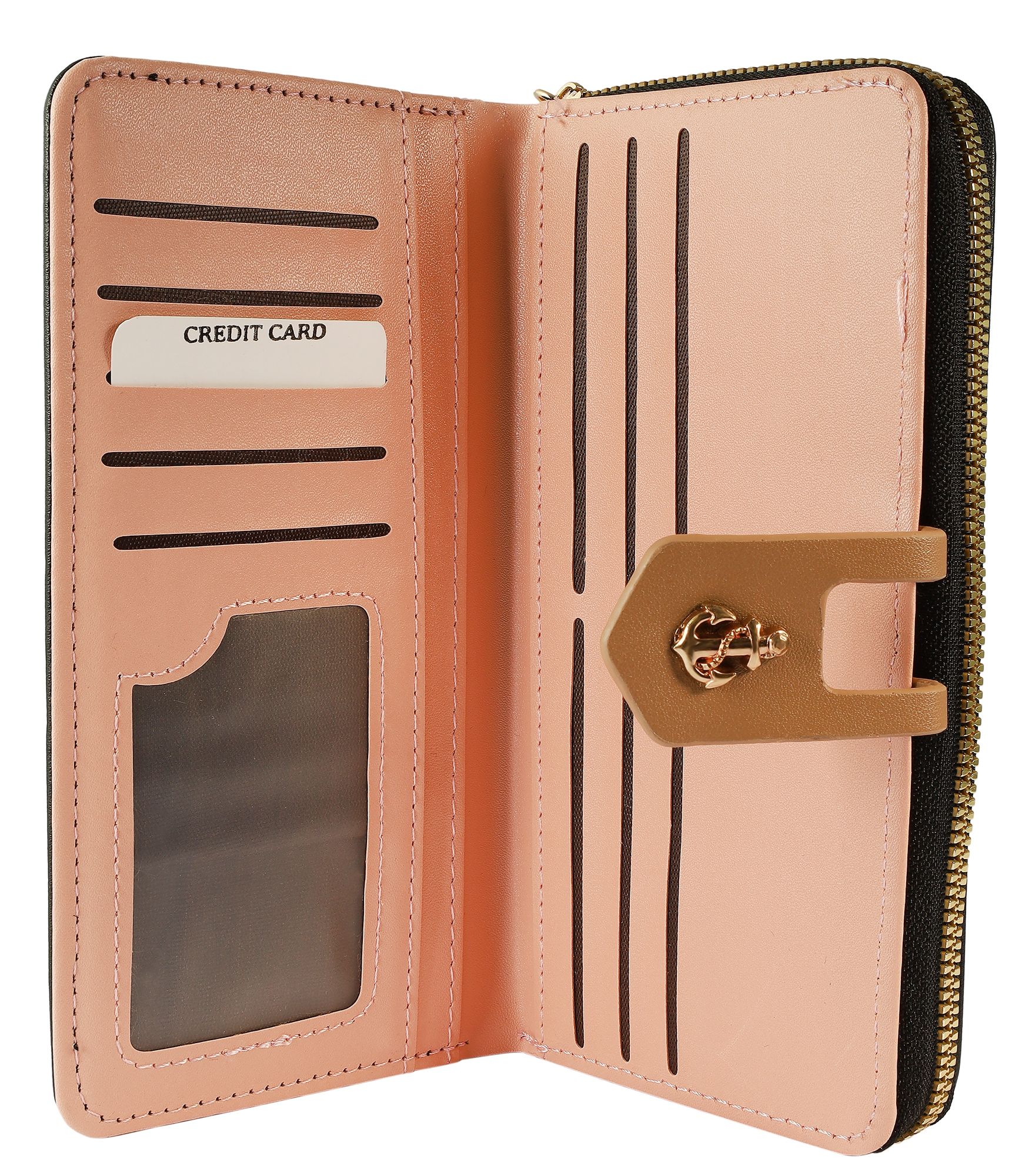 De veilige ritssluiting op het hoofdvak houdt biljetten en munten netjes opgeborgen. De flap, die wordt gesloten met een stevige drukknoop, verbergt een slim ontworpen interieur: