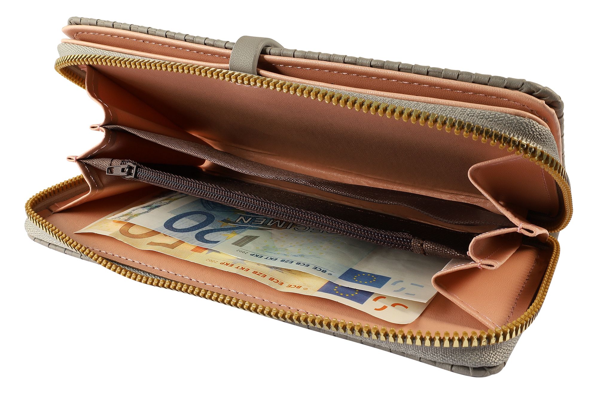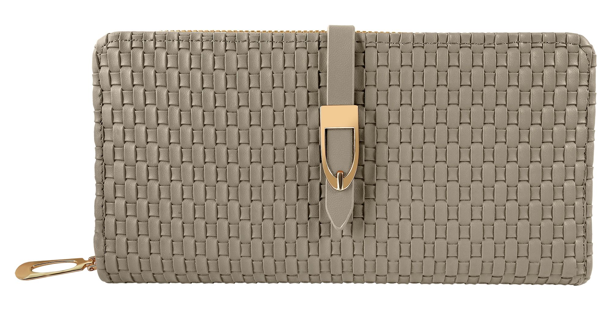 Productinformatie "Damengeldbörse aus Lederimitat, gewebtes Design, grau"