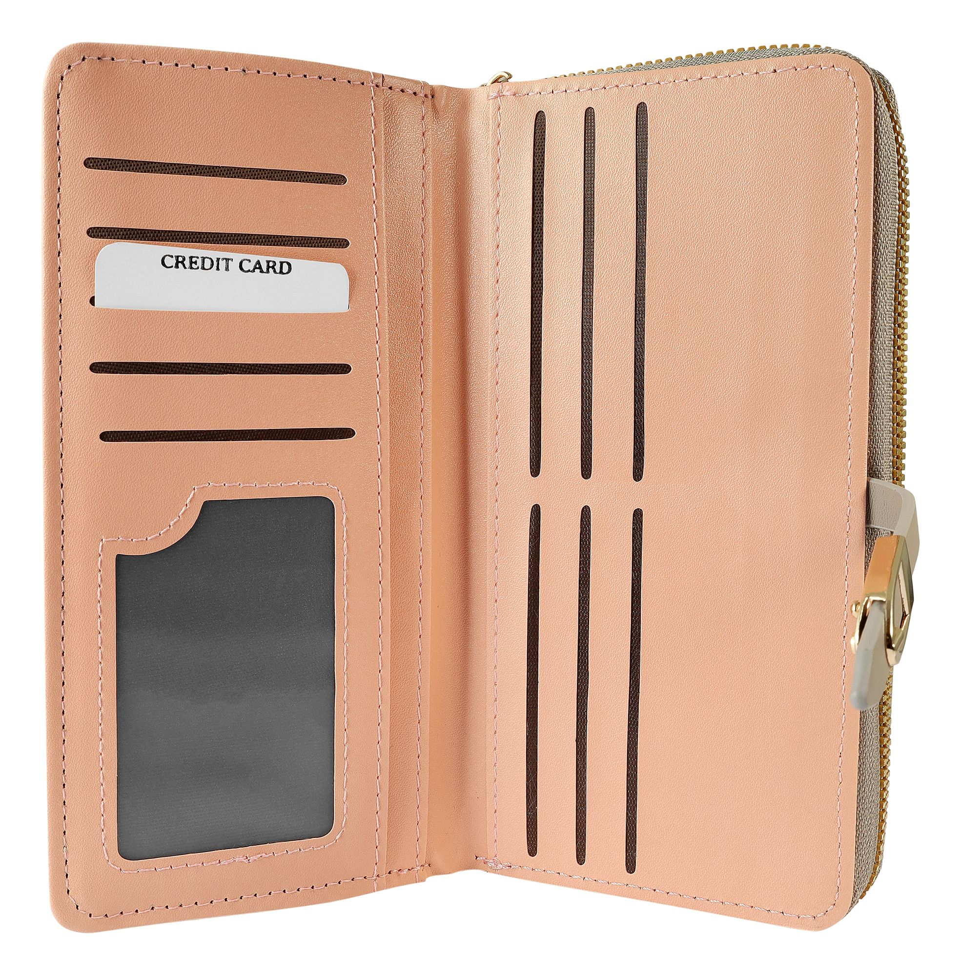 - Binnenin vind je 10 vakjes voor creditcards, een transparant vak voor ID-kaarten en drie insteekvakken voor een optimale organisatie van je financiën.