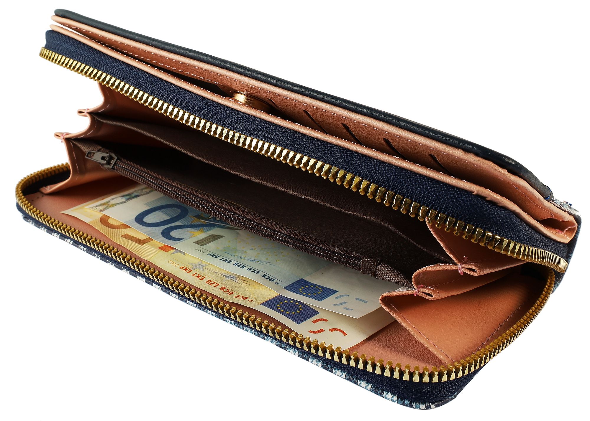 • een hoofdvak met ritssluiting voor biljetten en munten