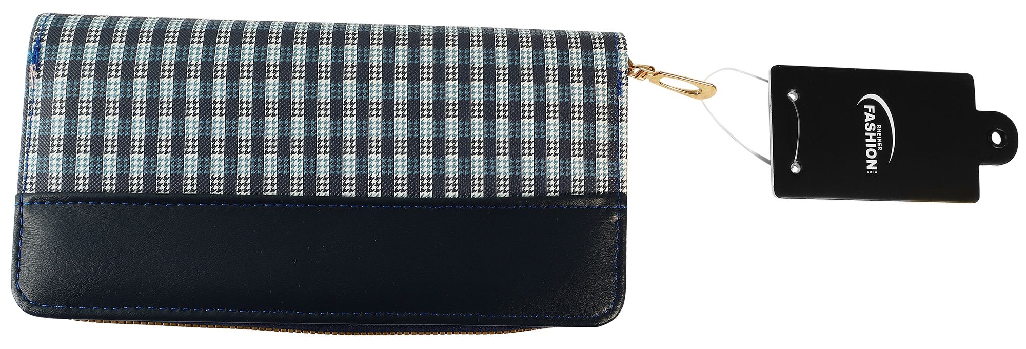 Deze modieuze portemonnee in een praktisch horizontaal formaat is een echte blikvanger. Het speciale geruite ontwerp en de elegante combinatie met glad imitatieleer maken het tot een stijlvol accessoire. Met een formaat van 10 x 19 x 3,8 cm biedt hij ondanks zijn compacte vorm genoeg ruimte voor al je belangrijke spullen.