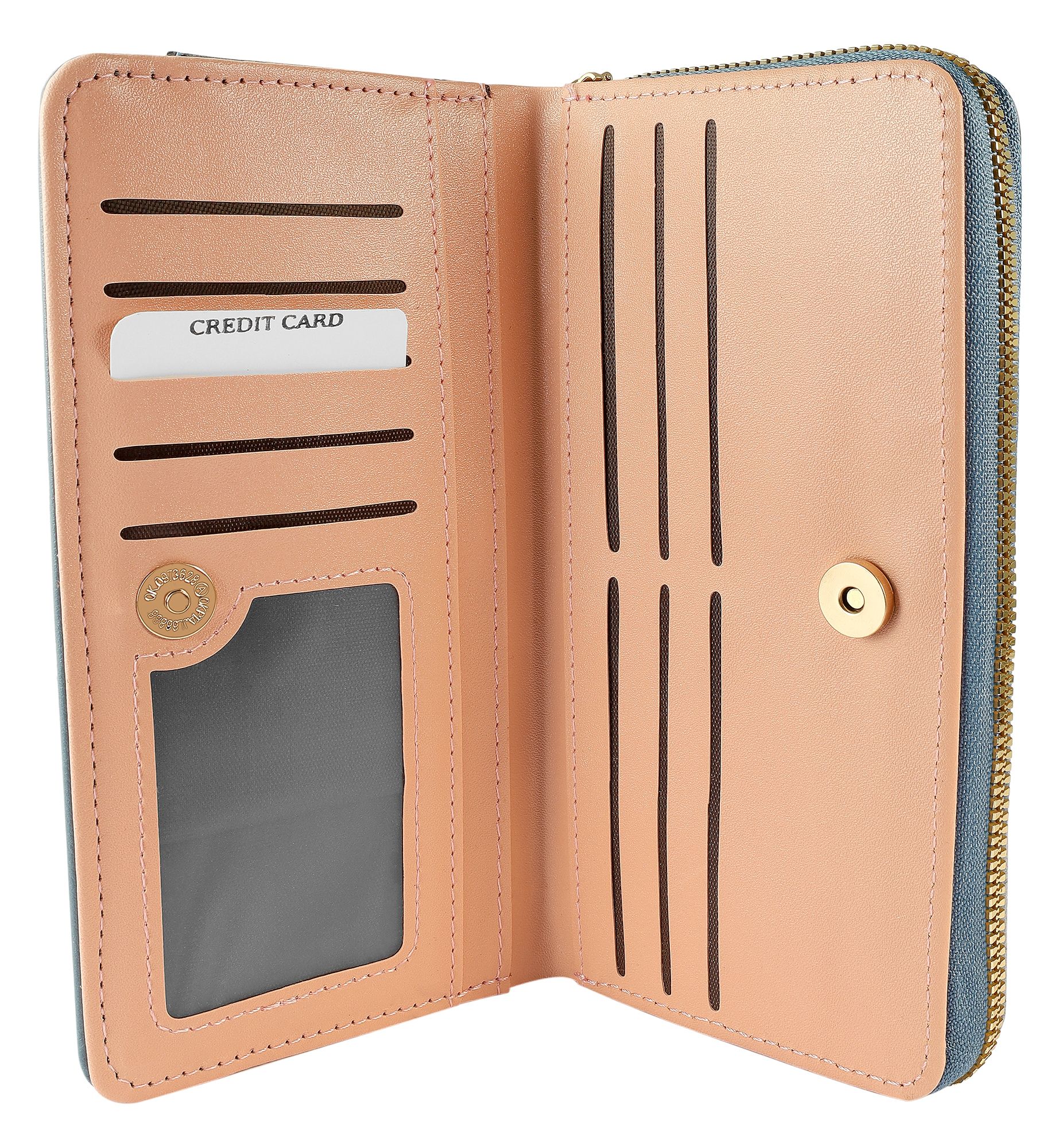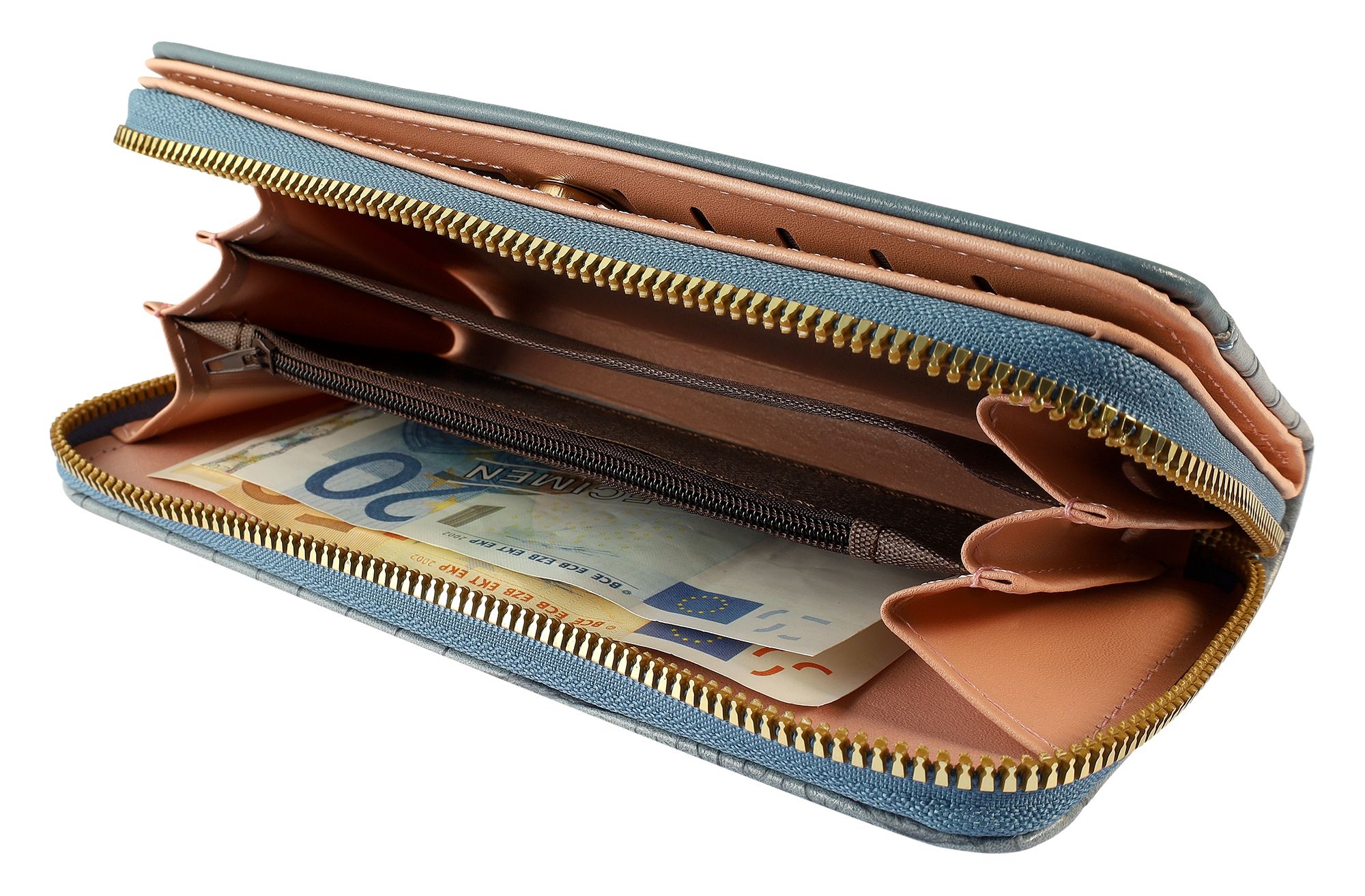 Productinformatie "Damengeldbörse mit Krokooptik, Lederimitat, blau"