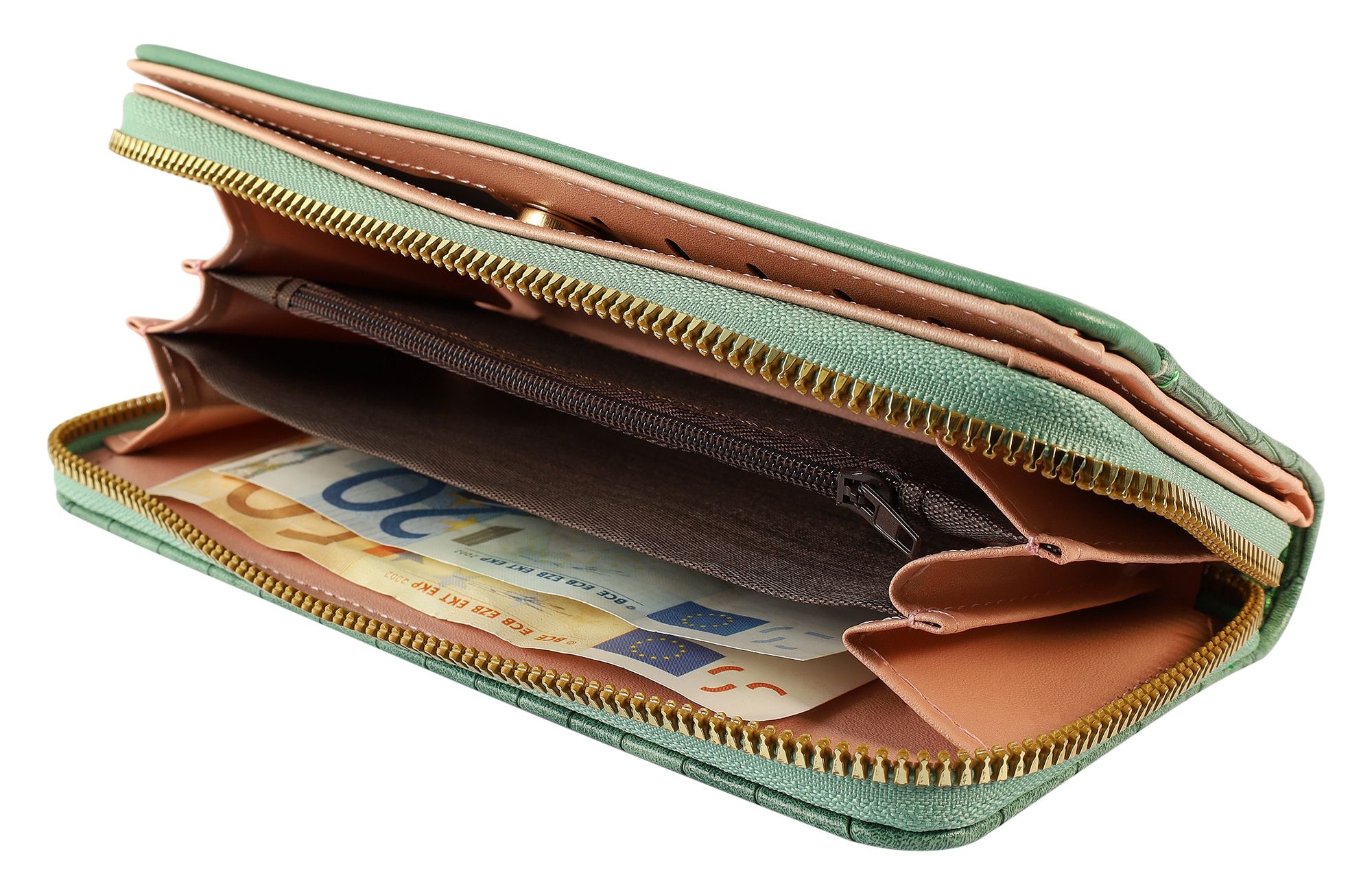 Productinformatie "Damengeldbörse mit Krokooptik, Lederimitat, grün"