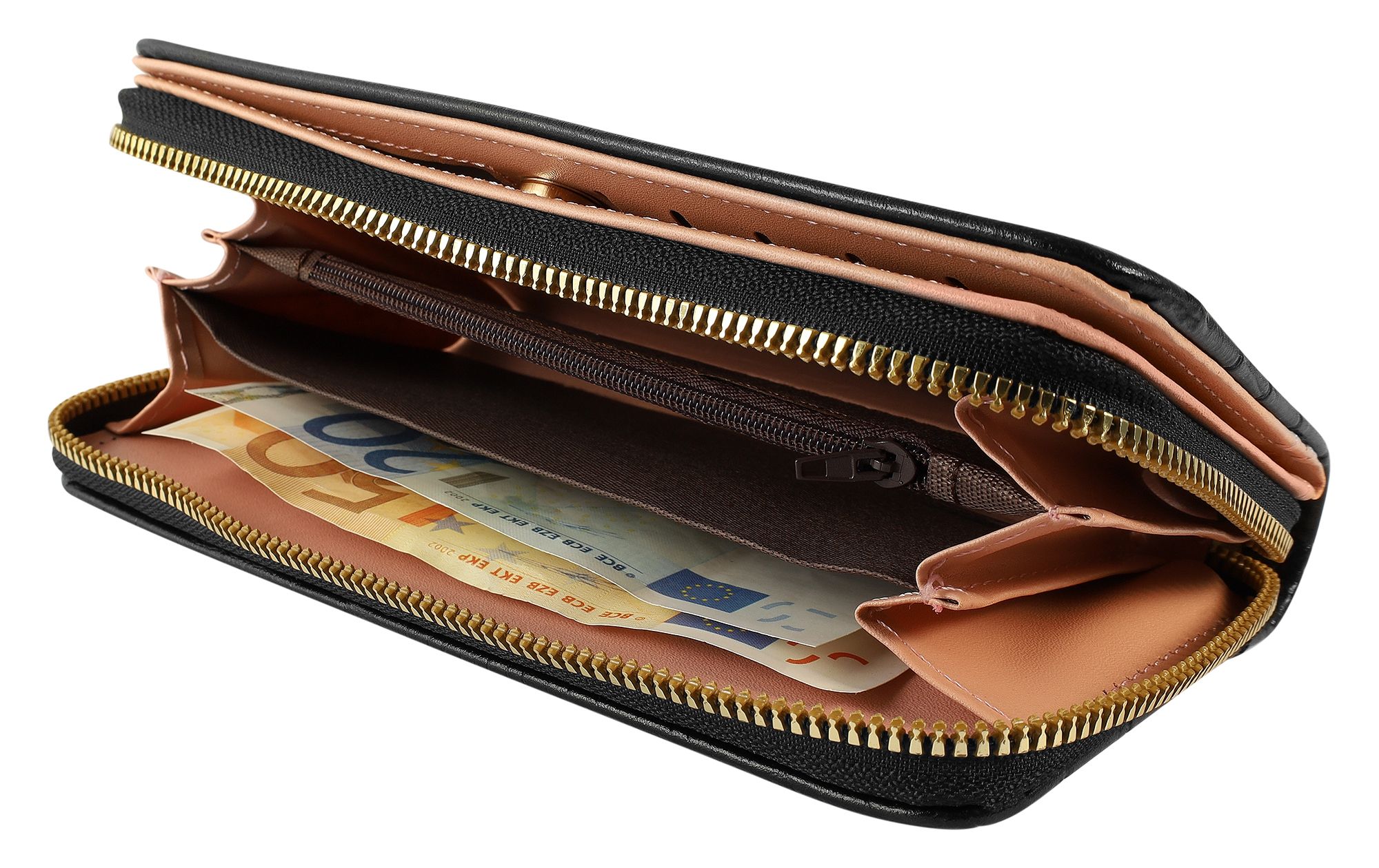 Deze modieuze portemonnee van hoogwaardig kunstleer maakt indruk met zijn elegante krokodillenstempel. Dankzij het praktische lengteformaat en de compacte afmetingen van 10 x 19 x 3,8 cm is het een ideale dagelijkse metgezel die in elke handtas past.