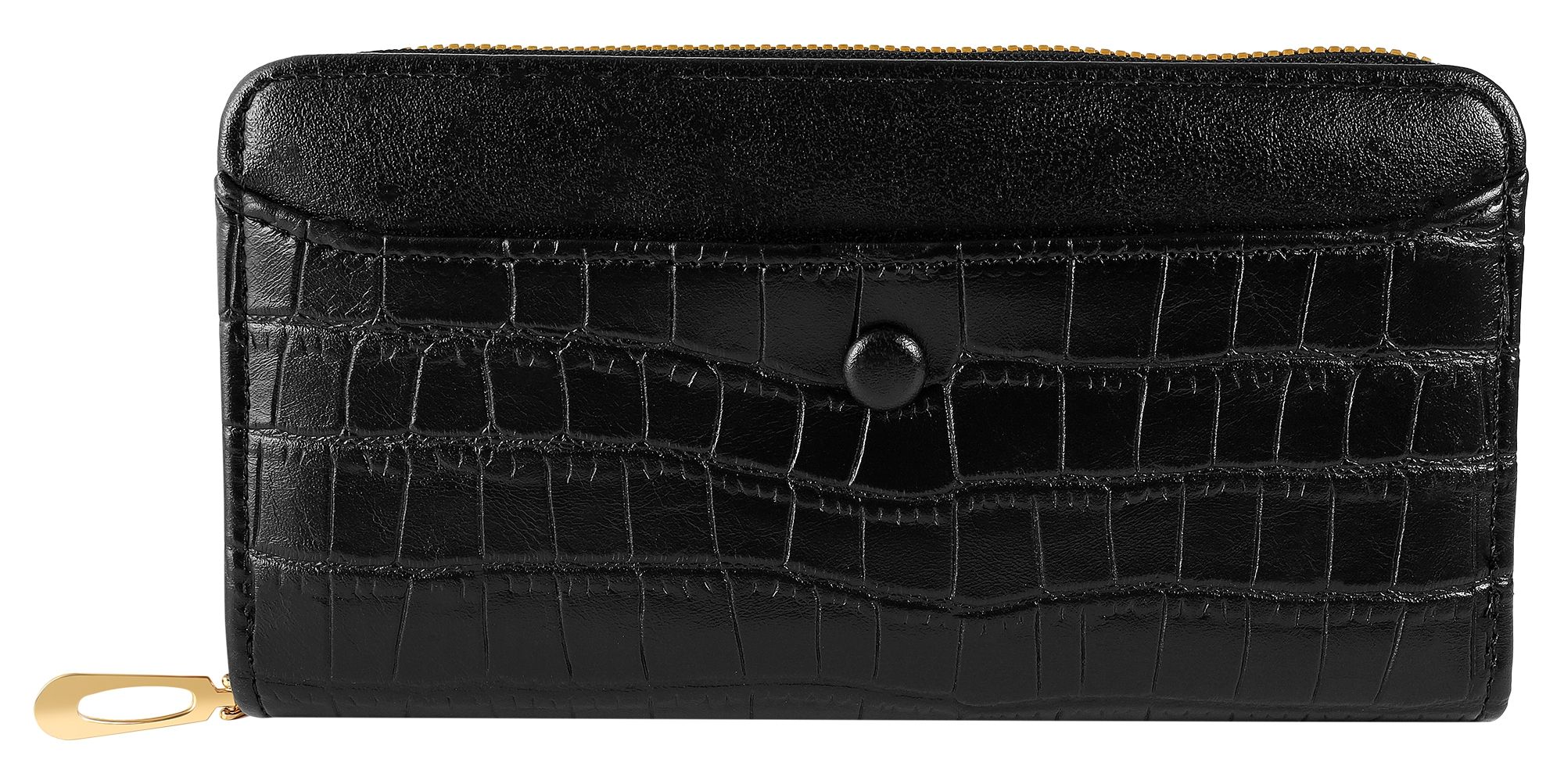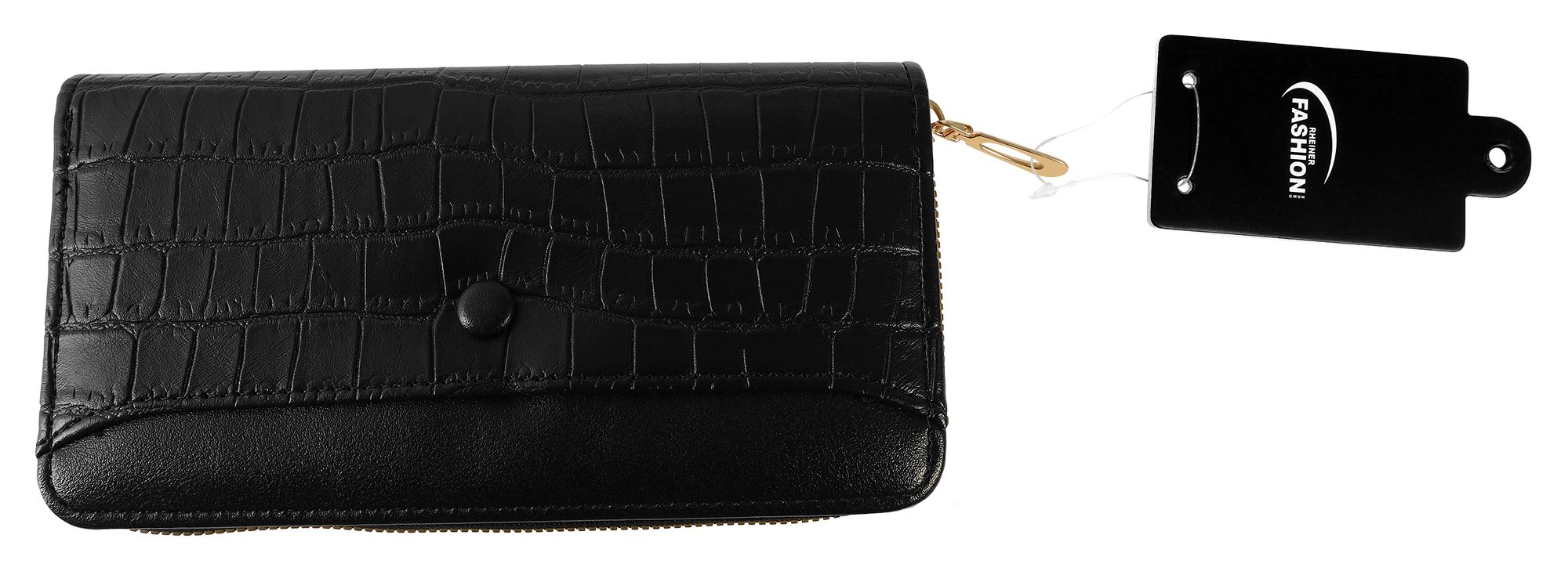 Productinformatie "Damengeldbörse mit Krokooptik, Lederimitat, schwarz"