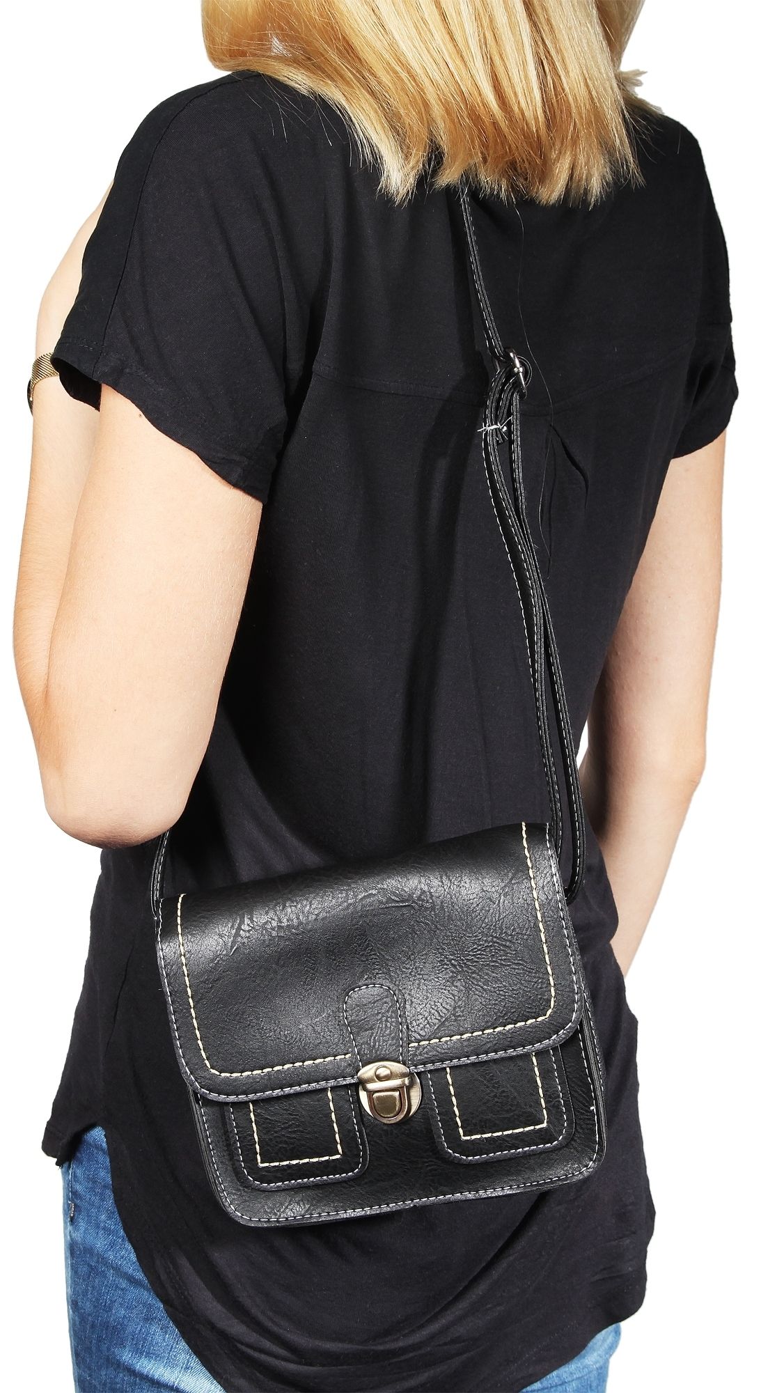 De compacte handtas is gemaakt van robuust imitatieleer en heeft een glad oppervlak. De lichtgekleurde stiksels aan de buiten- en binnenkant zorgen voor een goede duurzaamheid en stabiliteit en contrasteren mooi met de kleur. De tas heeft ook een lang, 13 mm breed draaghengsel dat kan worden uitgeschoven tot een maximale lengte van ca. 120 cm. De schoudertas heeft een ruim binnenvak dat kan worden afgesloten met een klep en drukknoopsluiting. Twee andere kleine vakken kunnen worden gebruikt om kleine spullen in op te bergen. Deze stijlvolle tas is een modieuze allrounder die bij veel gelegenheden gedragen kan worden. Bovendien is niet alleen het ontwerp indrukwekkend, maar ook de mogelijkheid om al je belangrijke spullen in op te bergen. Of het nu gaat om een ontspannen wandeling, winkelen of een uitstapje - deze handtas is de ideale metgezel gemaakt van robuuste materialen. De ongevulde tas is 16 cm lang, 19,5 cm breed en 7,5 cm dik.